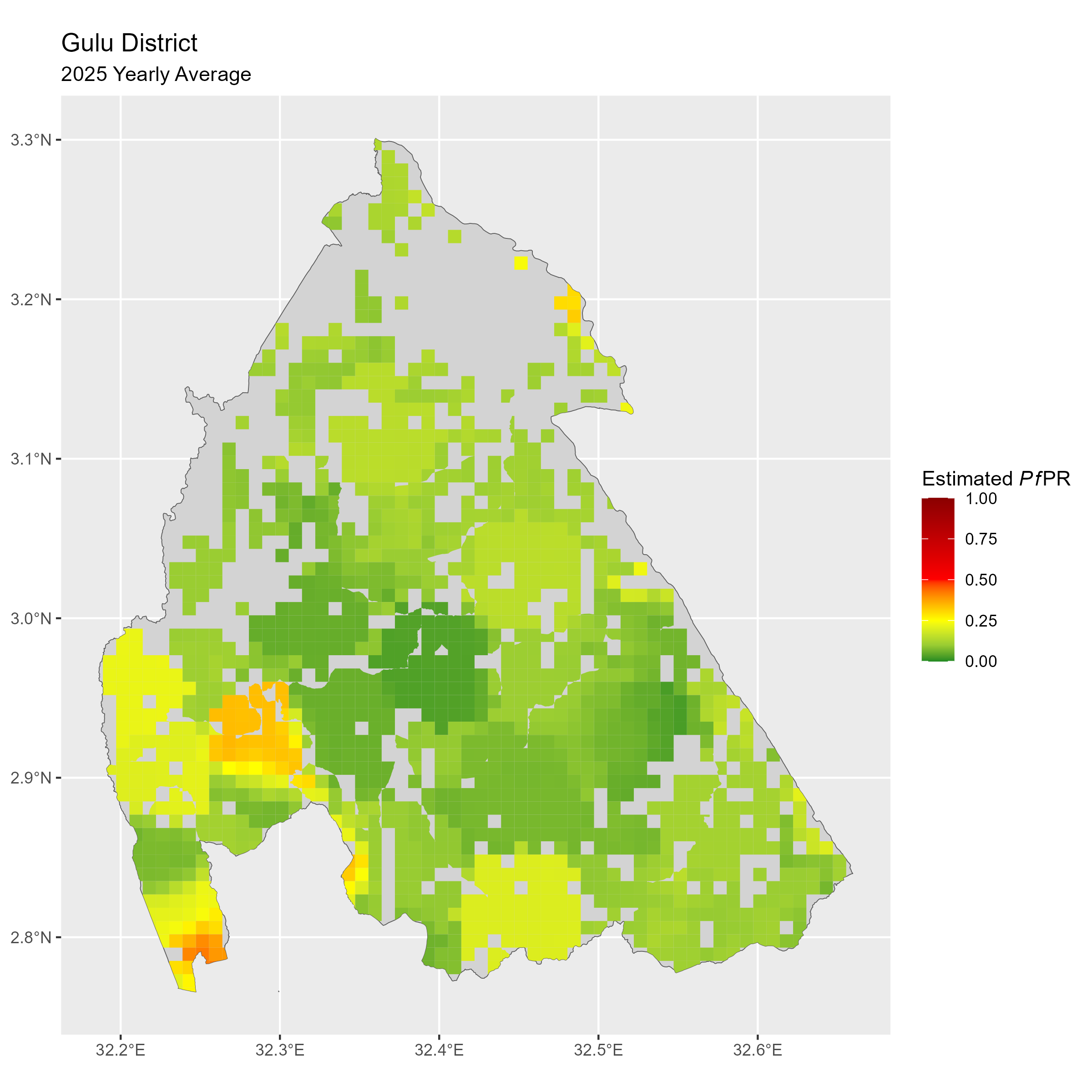 Click to watch an animation of PfPR at pixel level (in a new tab) by Year or by Month).