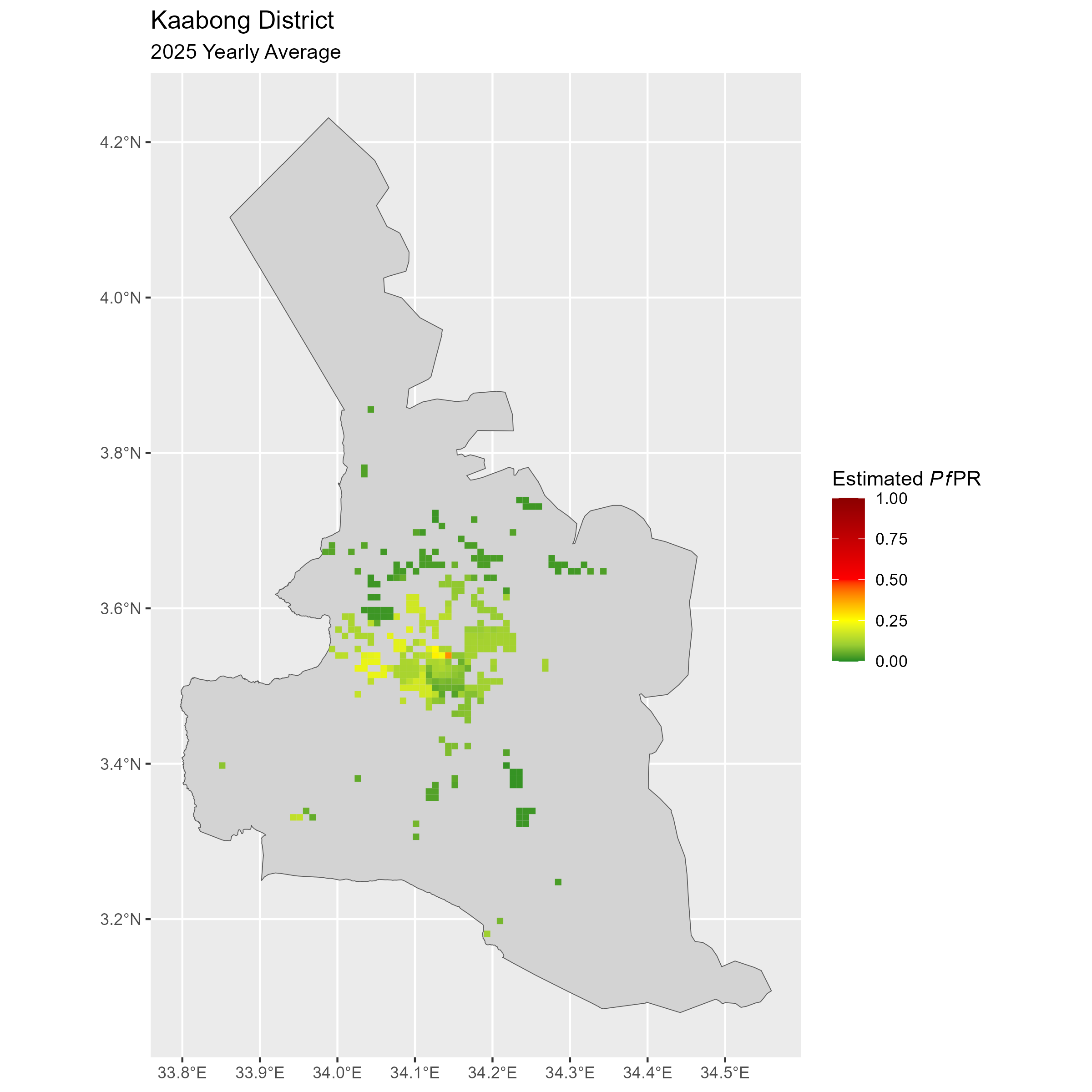Click to watch an animation of PfPR at pixel level (in a new tab) by Year or by Month).