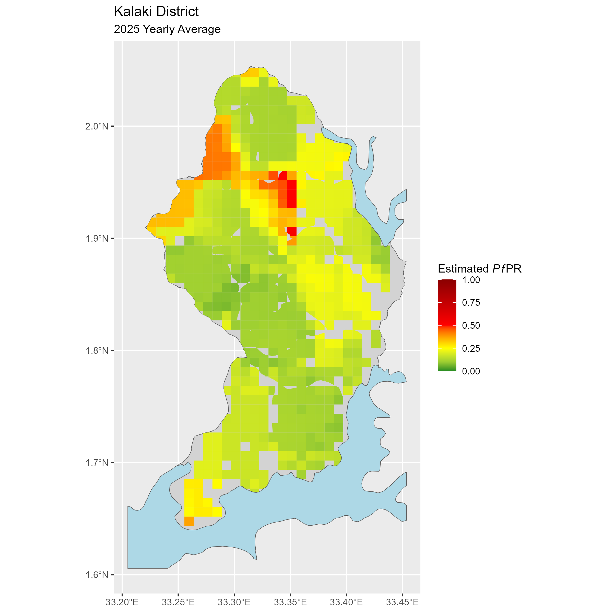 Click to watch an animation of PfPR at pixel level (in a new tab) by Year or by Month).