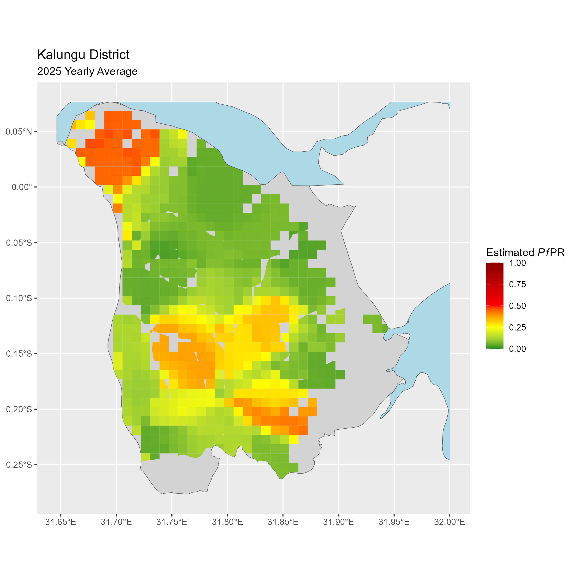 Click to watch an animation of PfPR at pixel level (in a new tab) by Year or by Month).