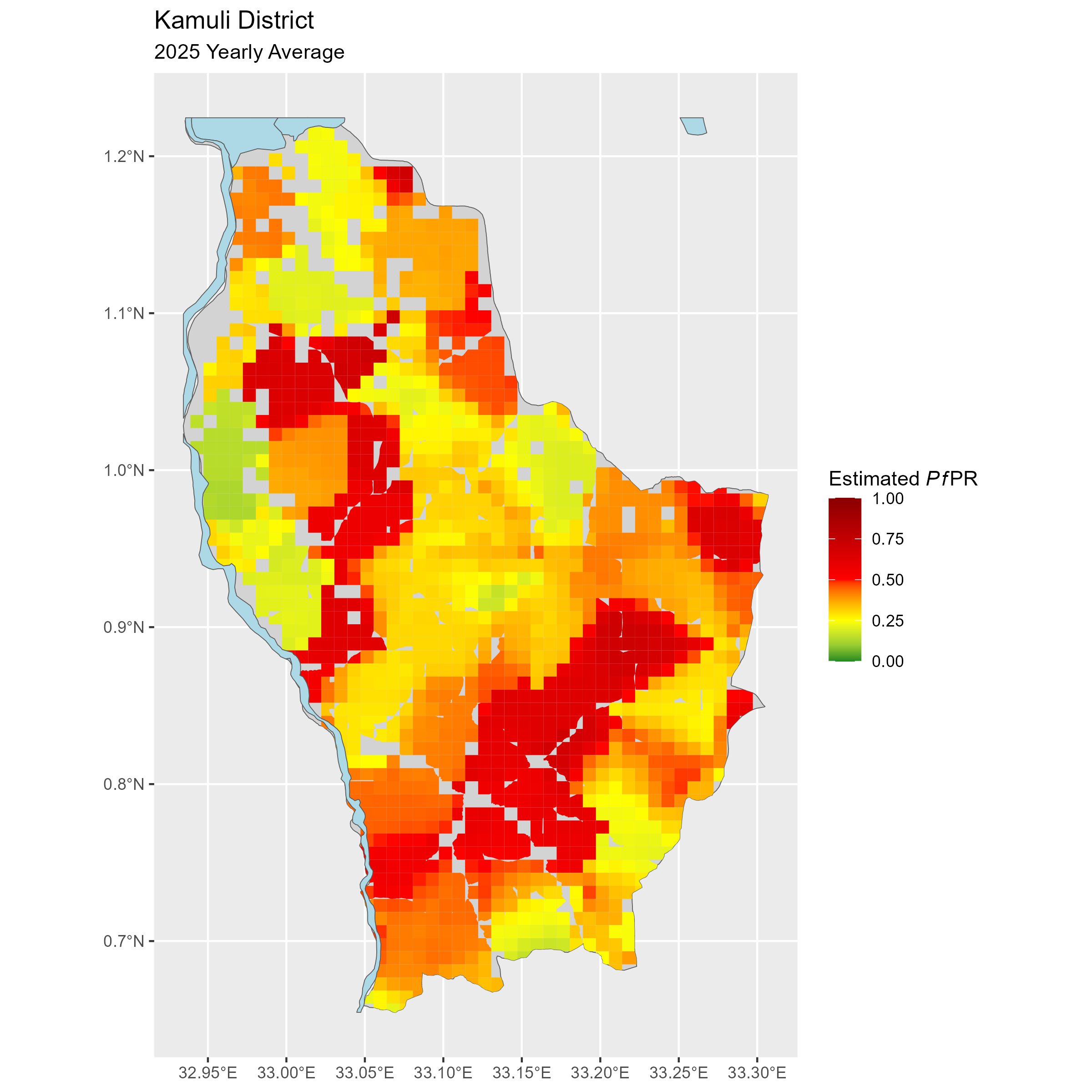 Click to watch an animation of PfPR at pixel level (in a new tab) by Year or by Month).