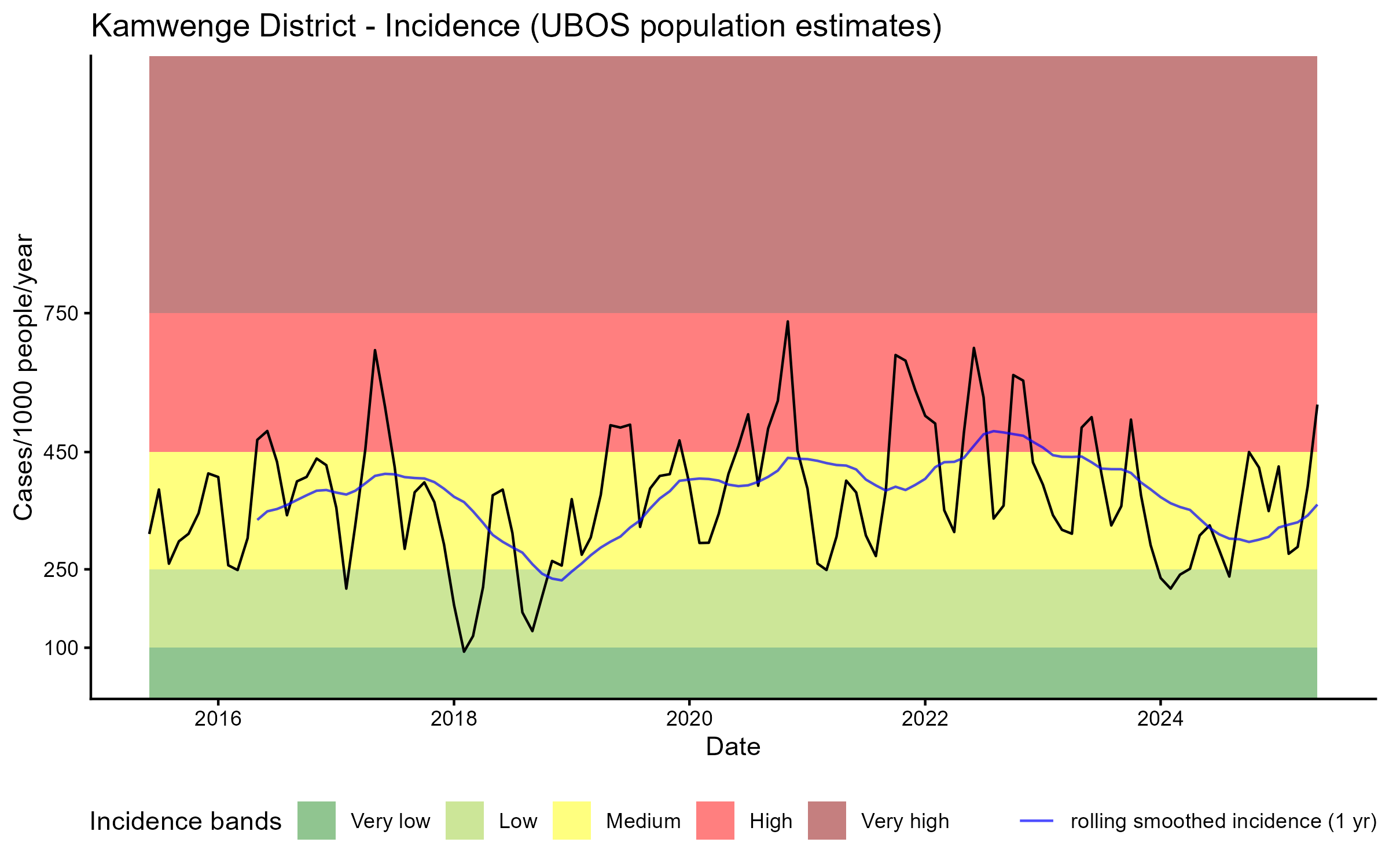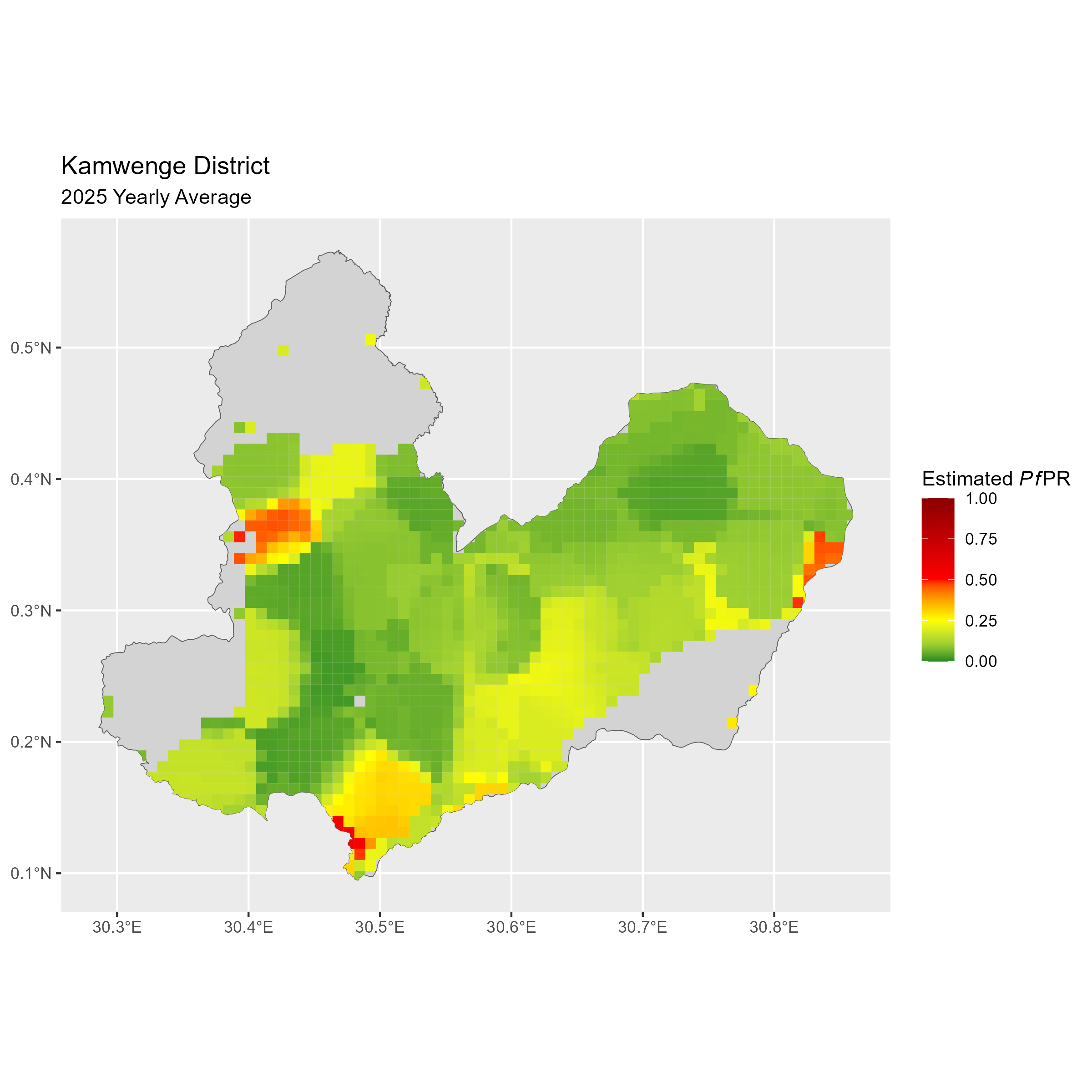 Click to watch an animation of PfPR at pixel level (in a new tab) by Year or by Month).