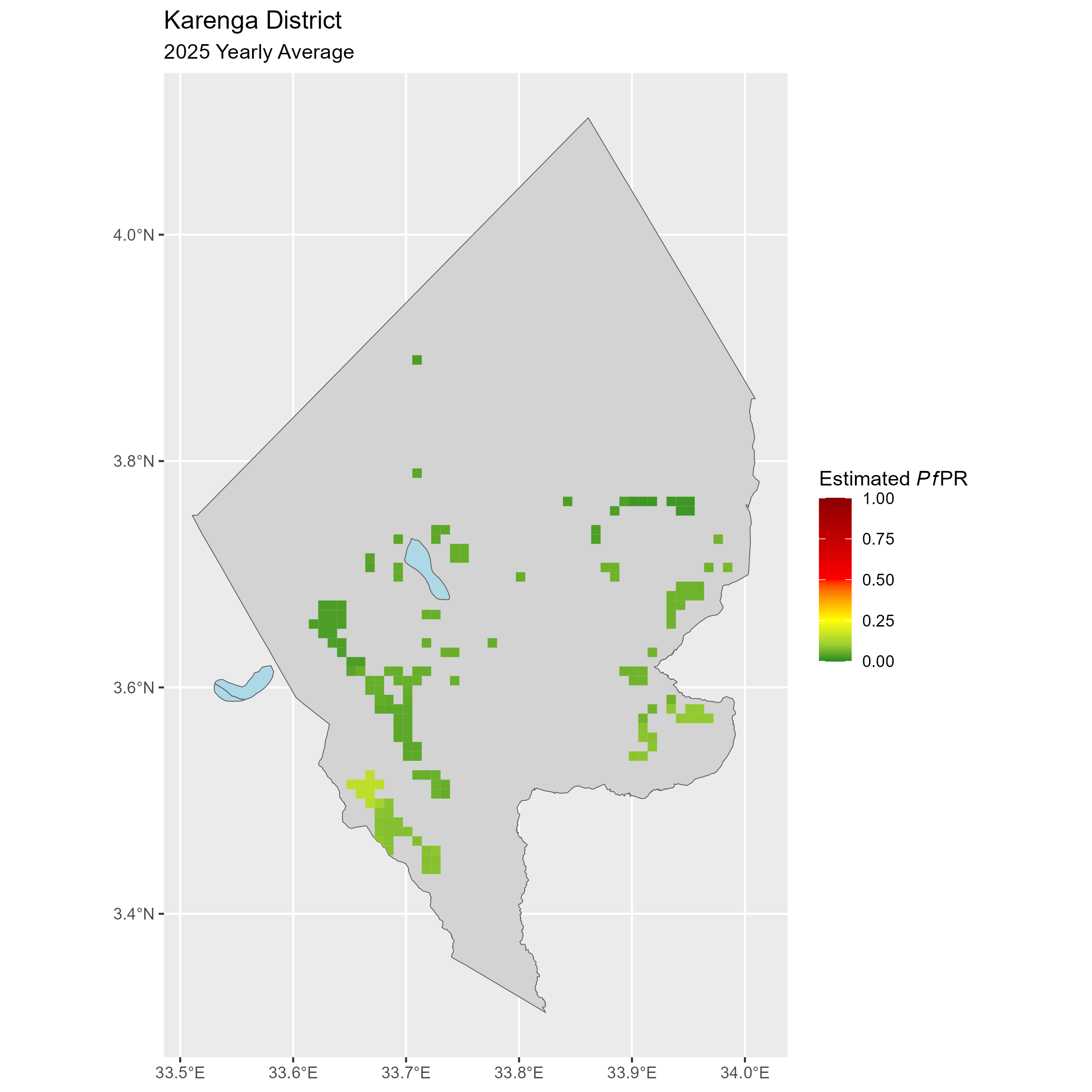 Click to watch an animation of PfPR at pixel level (in a new tab) by Year or by Month).