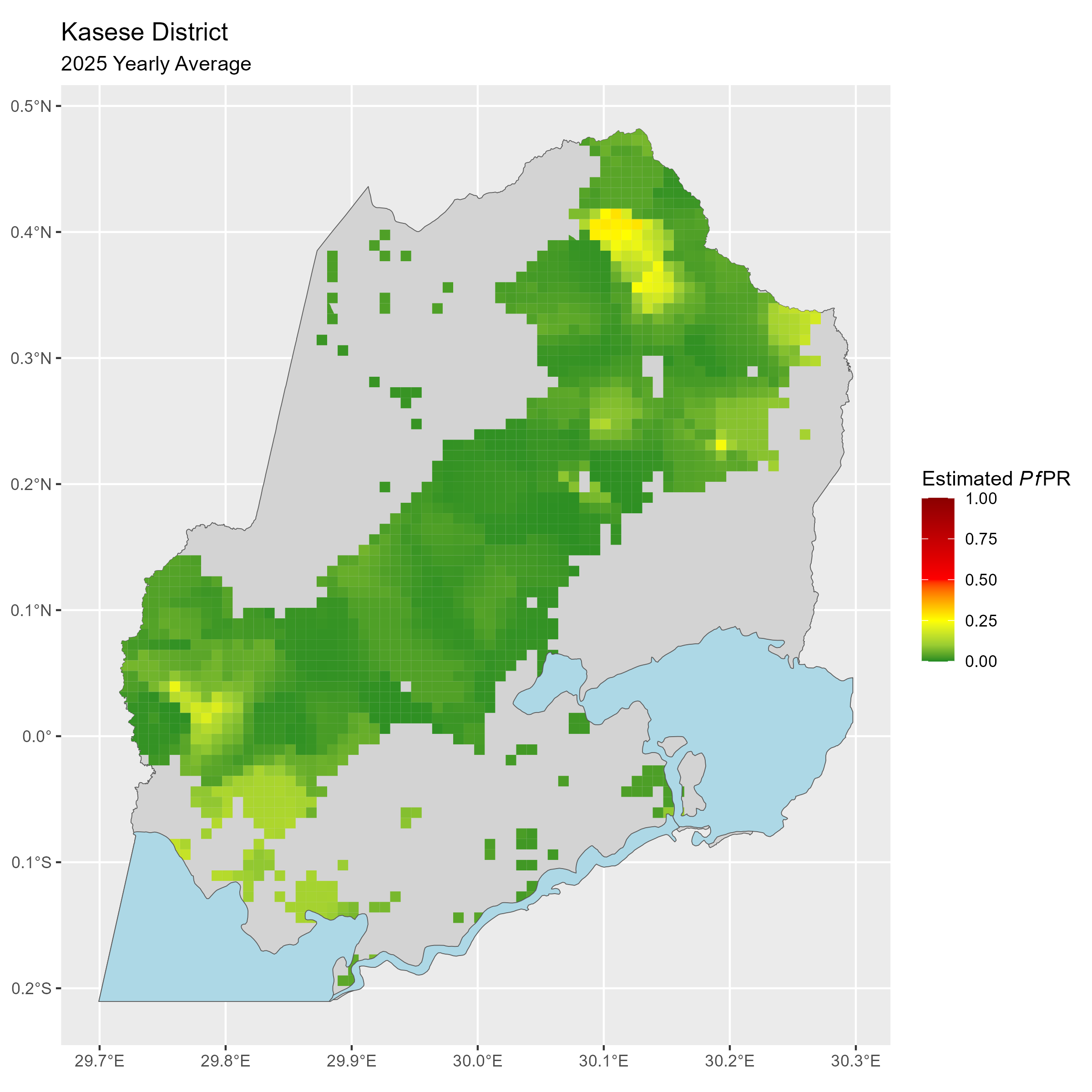 Click to watch an animation of PfPR at pixel level (in a new tab) by Year or by Month).