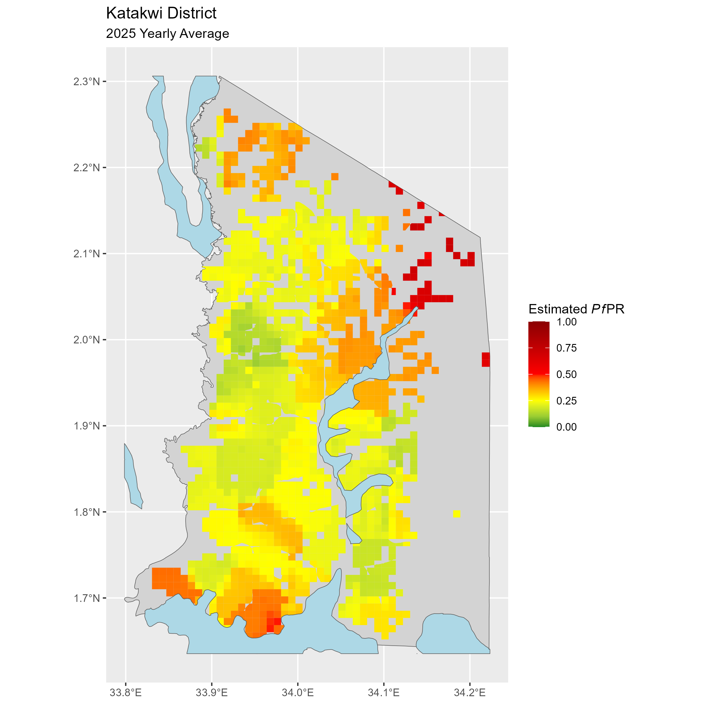 Click to watch an animation of PfPR at pixel level (in a new tab) by Year or by Month).