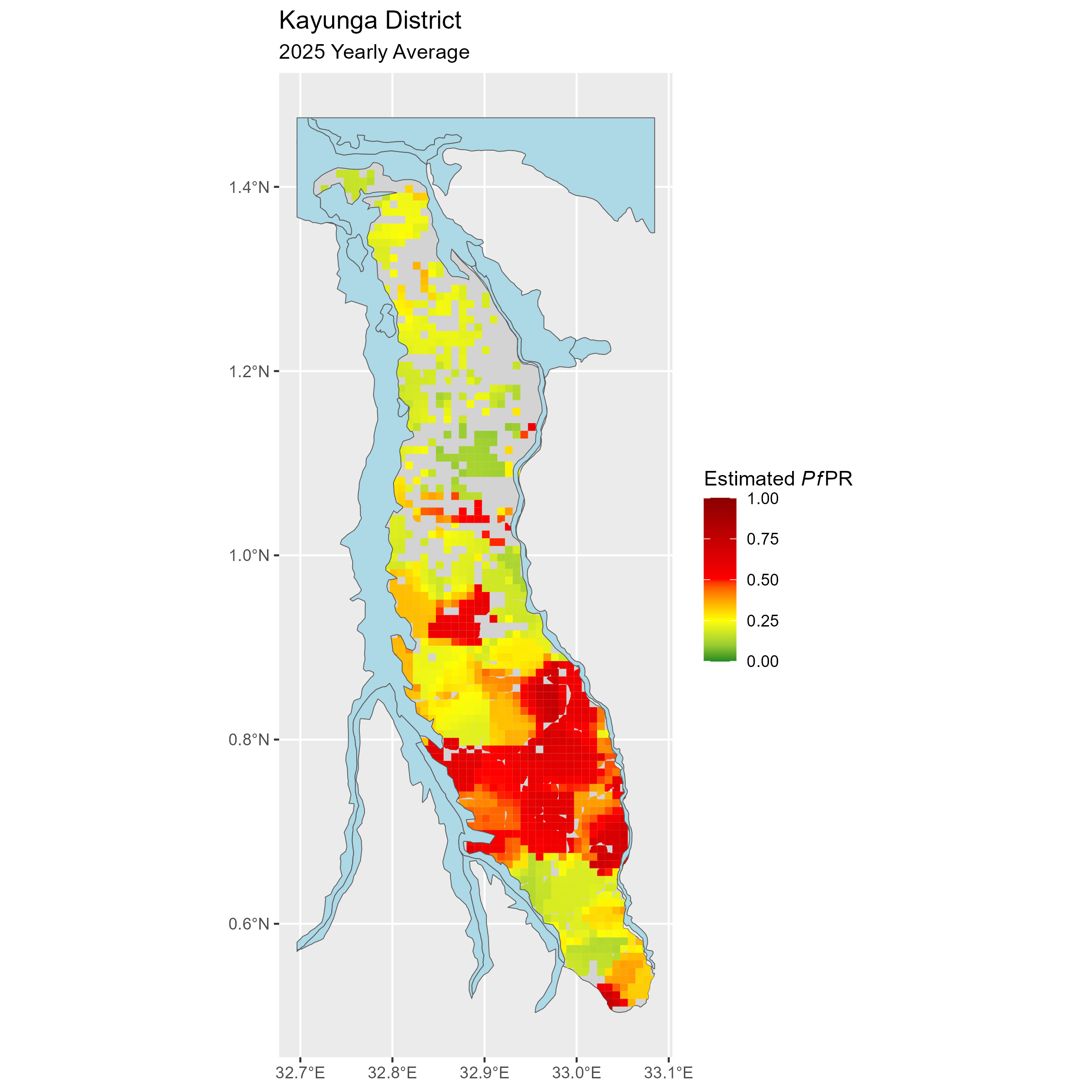 Click to watch an animation of PfPR at pixel level (in a new tab) by Year or by Month).