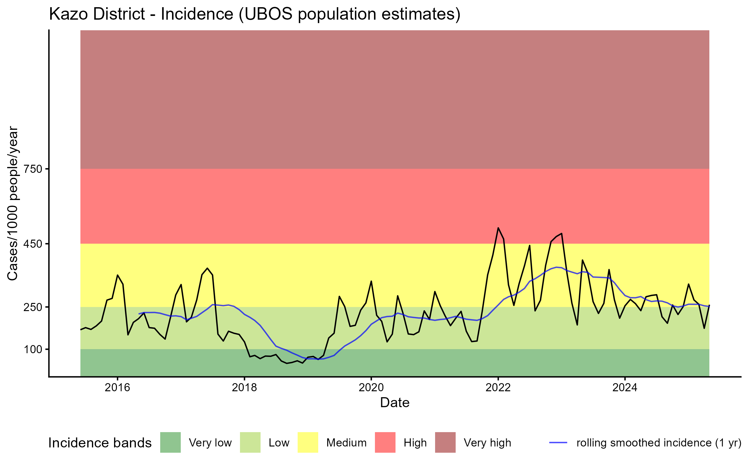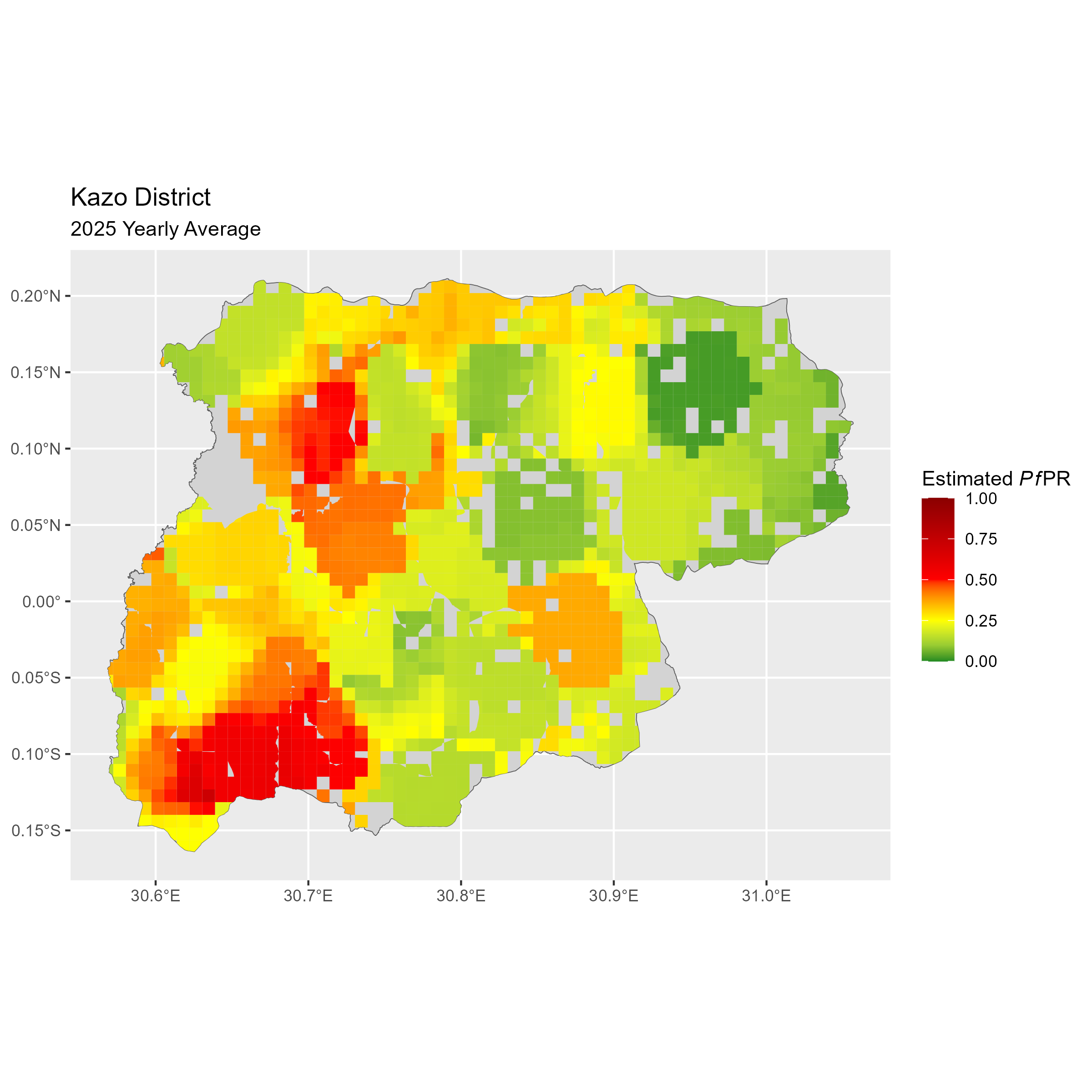 Click to watch an animation of PfPR at pixel level (in a new tab) by Year or by Month).