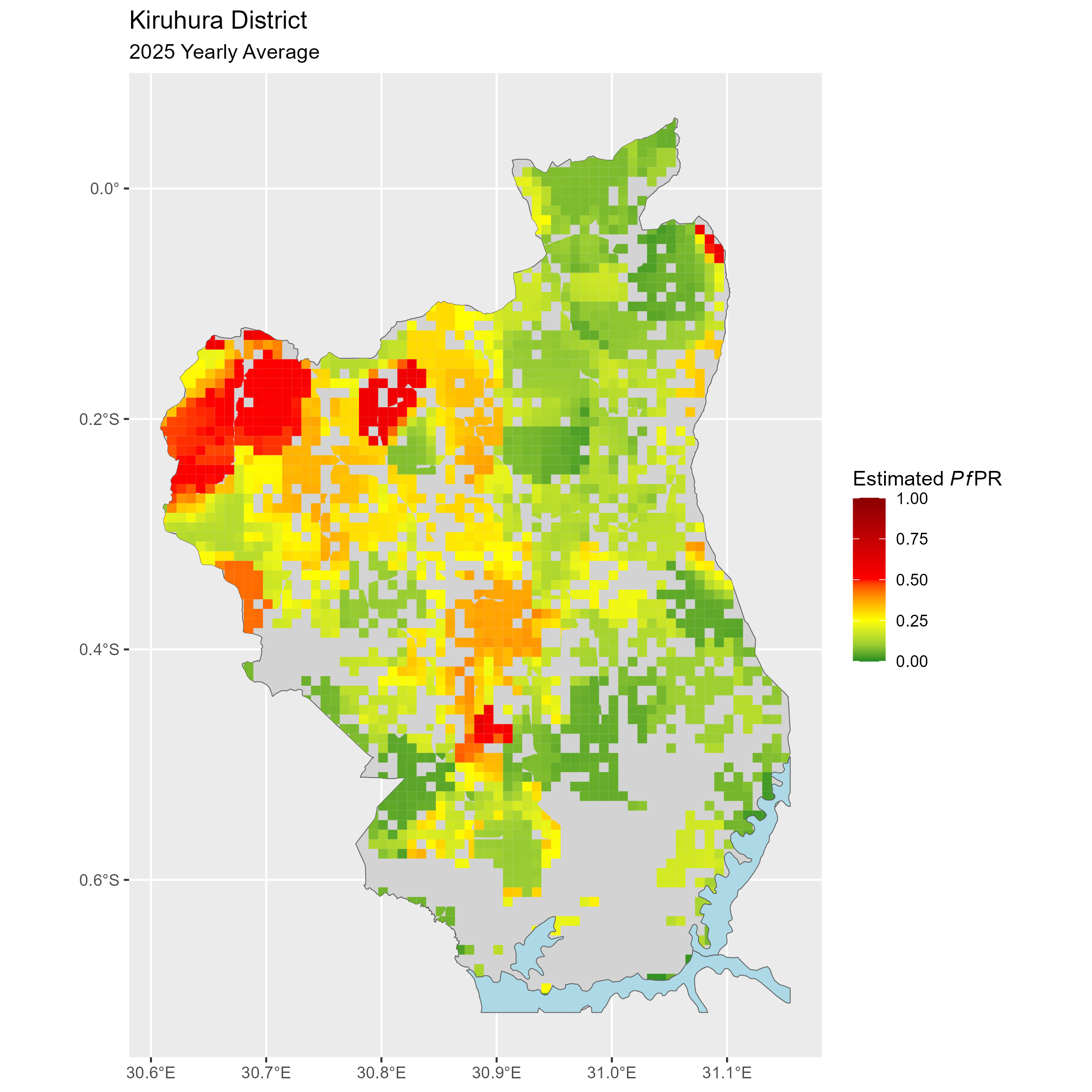 Click to watch an animation of PfPR at pixel level (in a new tab) by Year or by Month).
