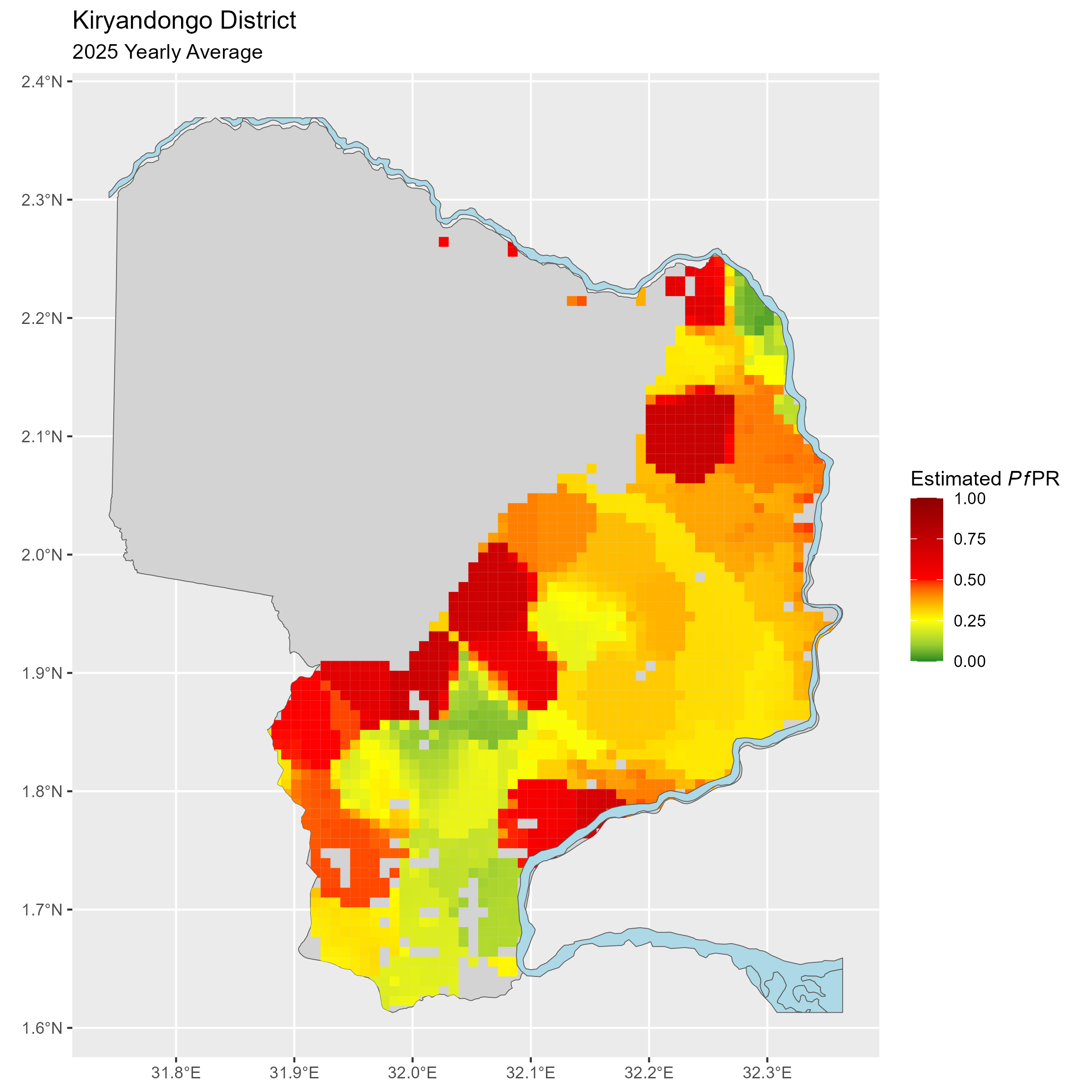 Click to watch an animation of PfPR at pixel level (in a new tab) by Year or by Month).