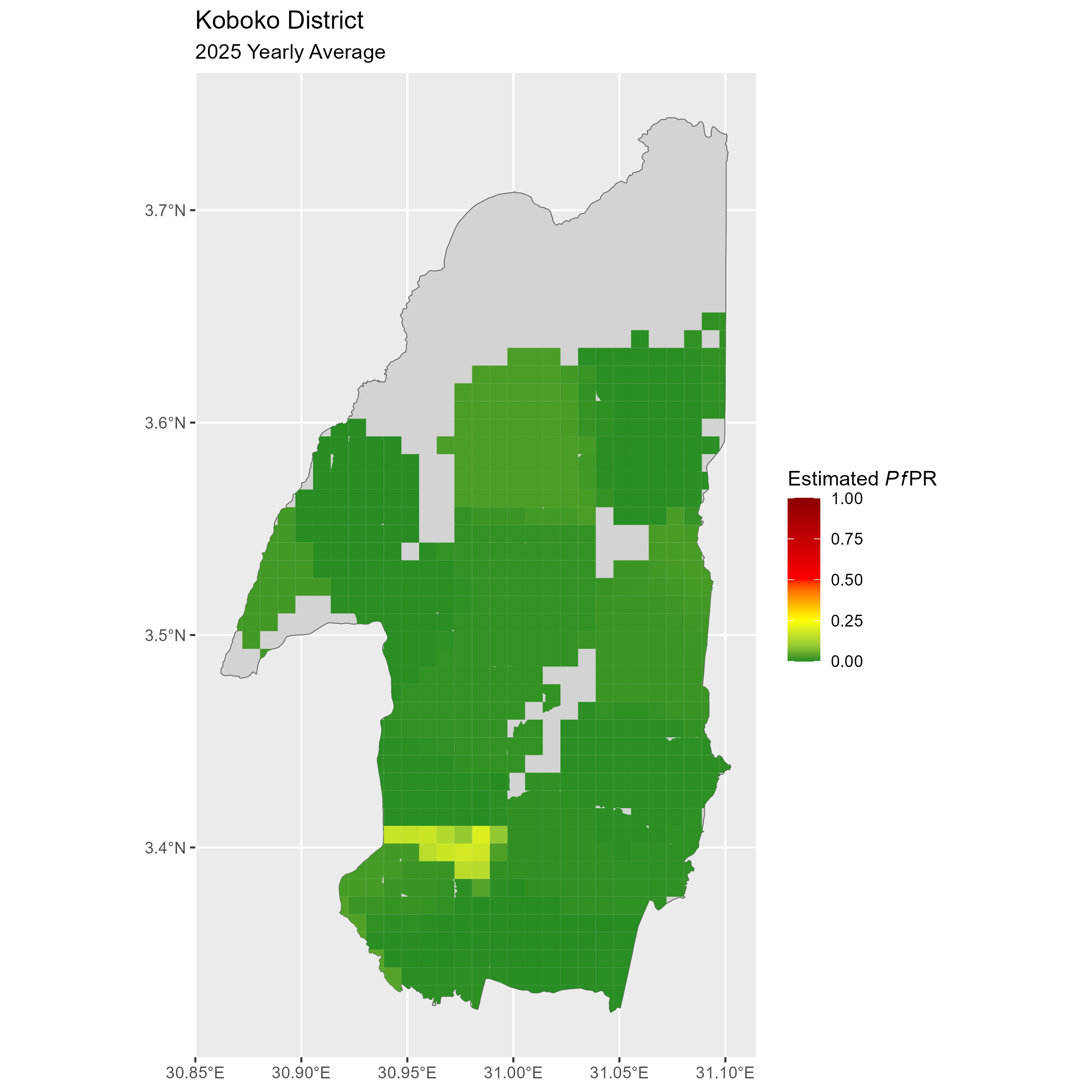 Click to watch an animation of PfPR at pixel level (in a new tab) by Year or by Month).