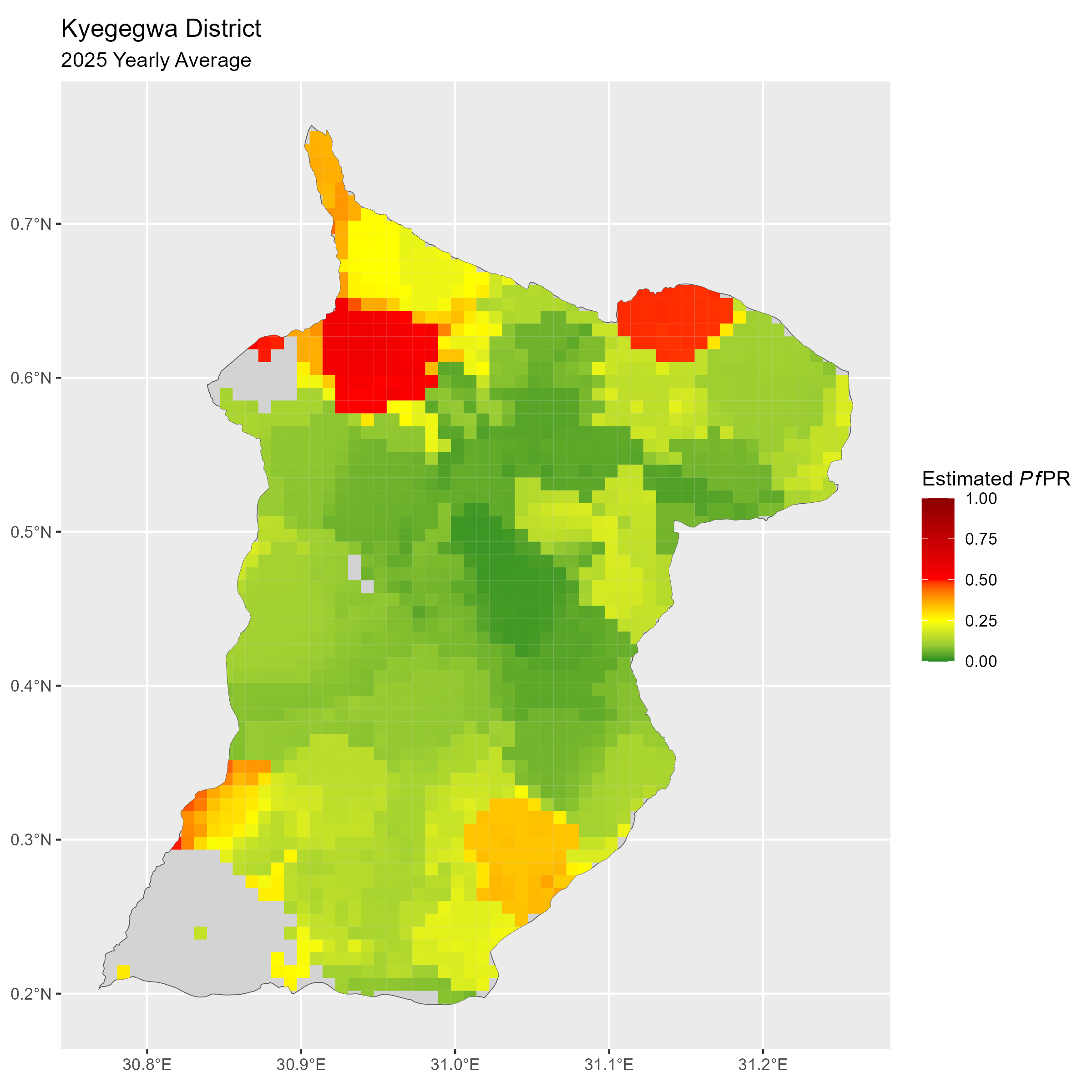 Click to watch an animation of PfPR at pixel level (in a new tab) by Year or by Month).