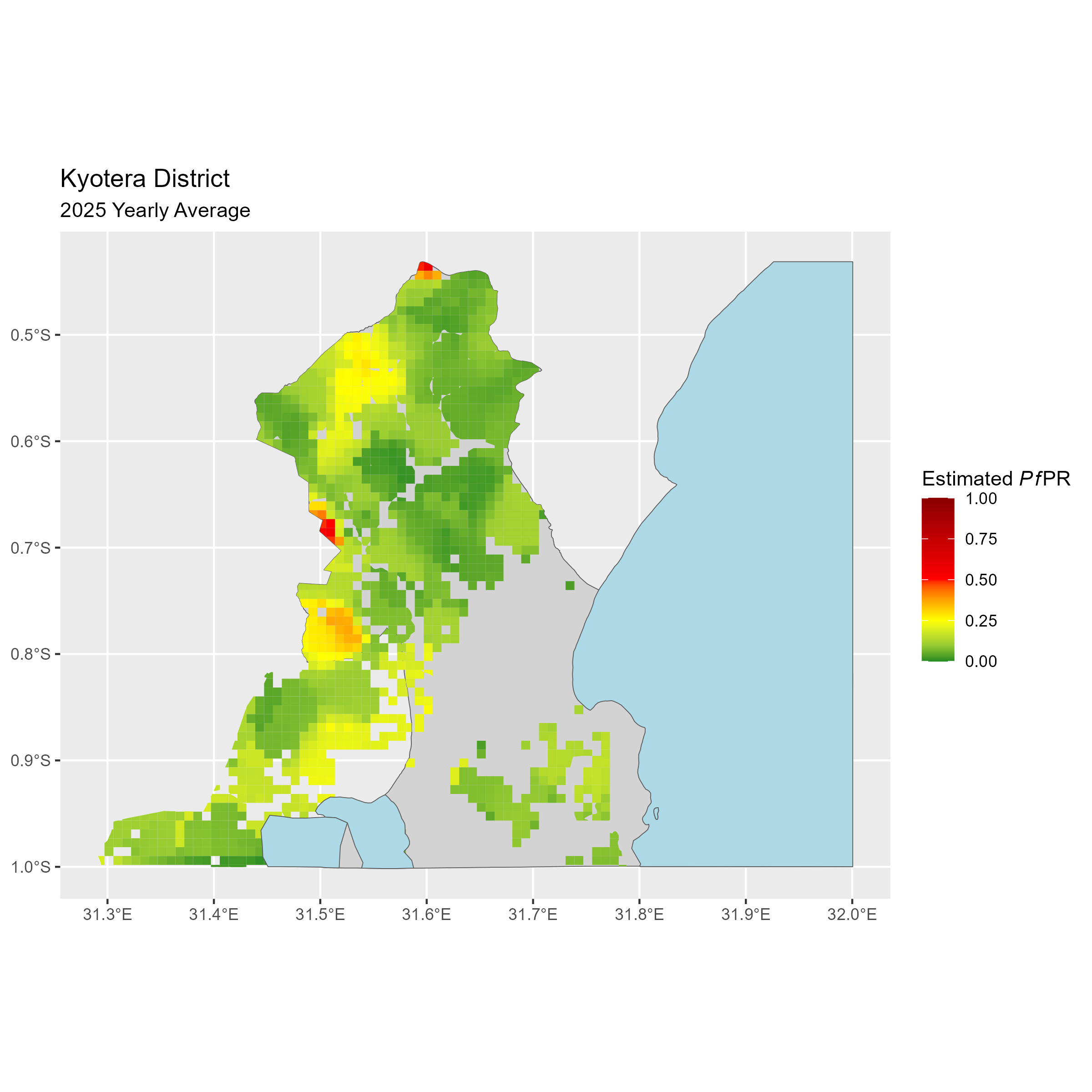 Click to watch an animation of PfPR at pixel level (in a new tab) by Year or by Month).