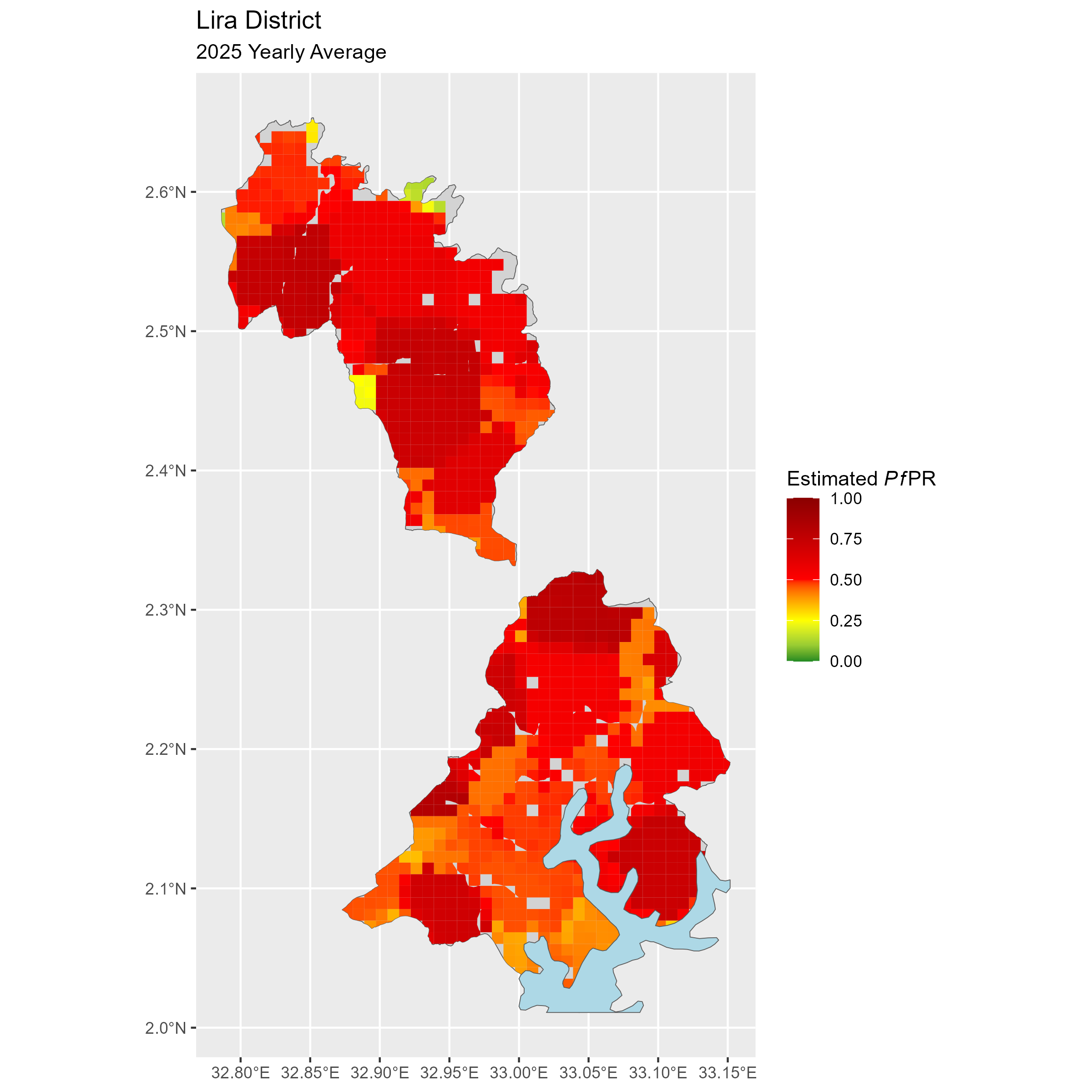 Click to watch an animation of PfPR at pixel level (in a new tab) by Year or by Month).