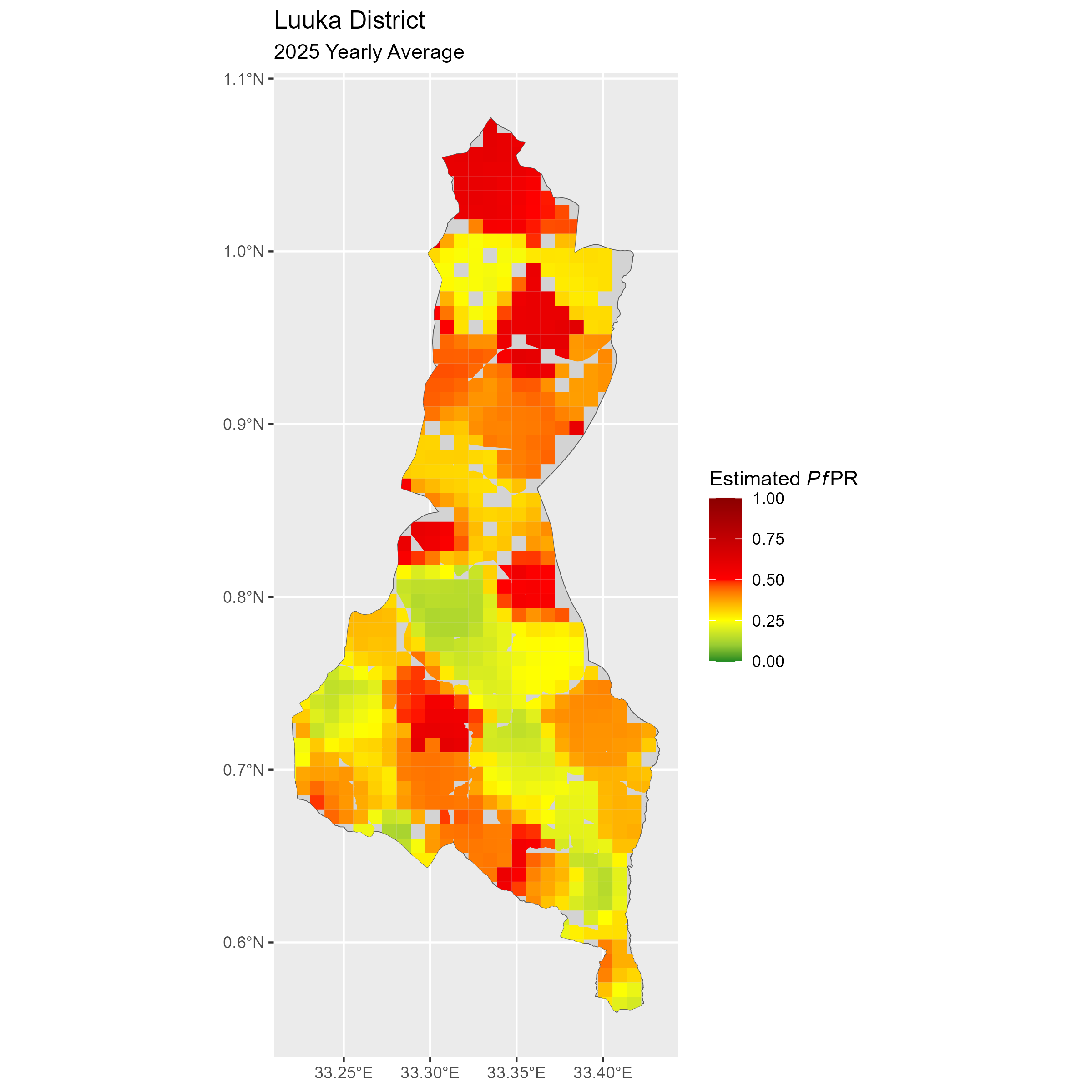 Click to watch an animation of PfPR at pixel level (in a new tab) by Year or by Month).