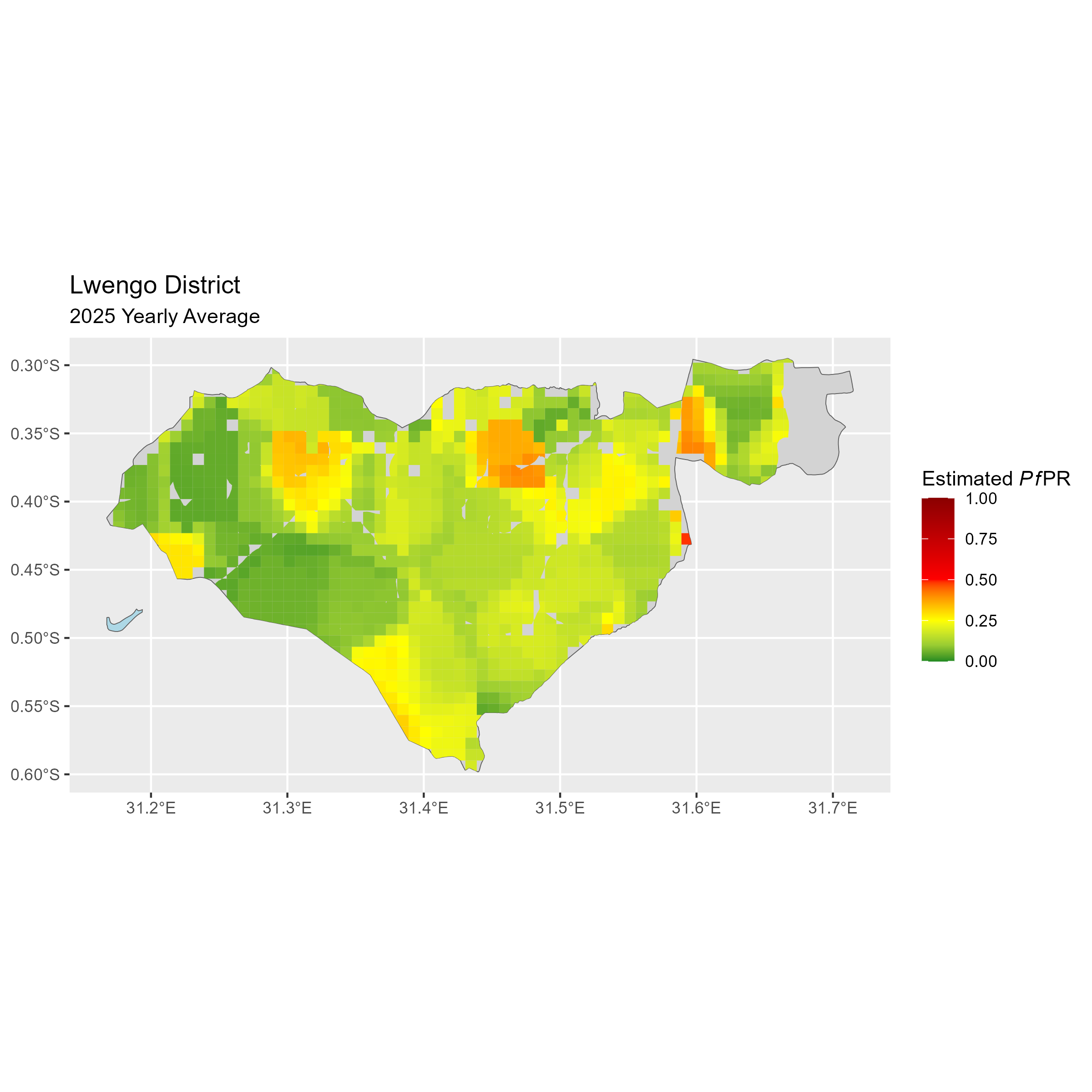 Click to watch an animation of PfPR at pixel level (in a new tab) by Year or by Month).
