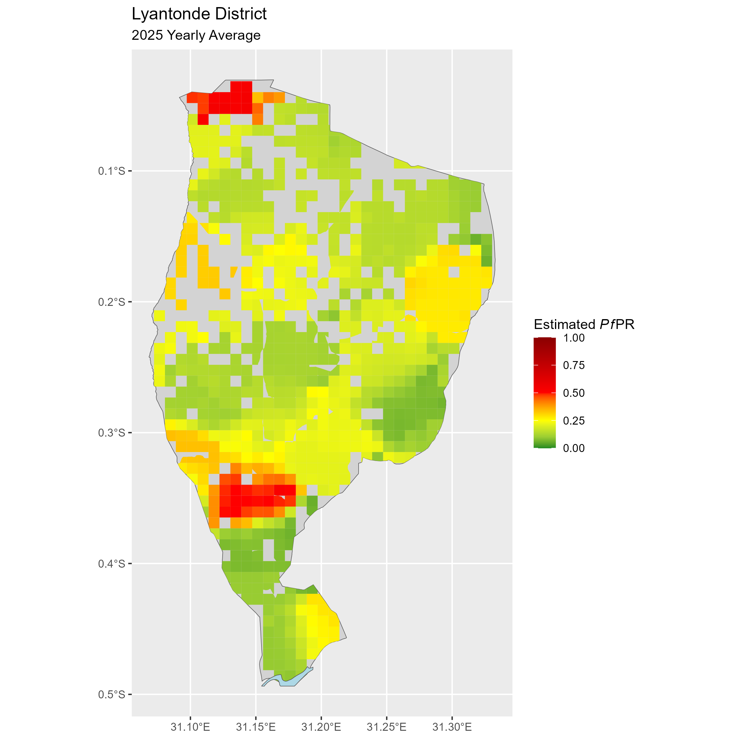 Click to watch an animation of PfPR at pixel level (in a new tab) by Year or by Month).