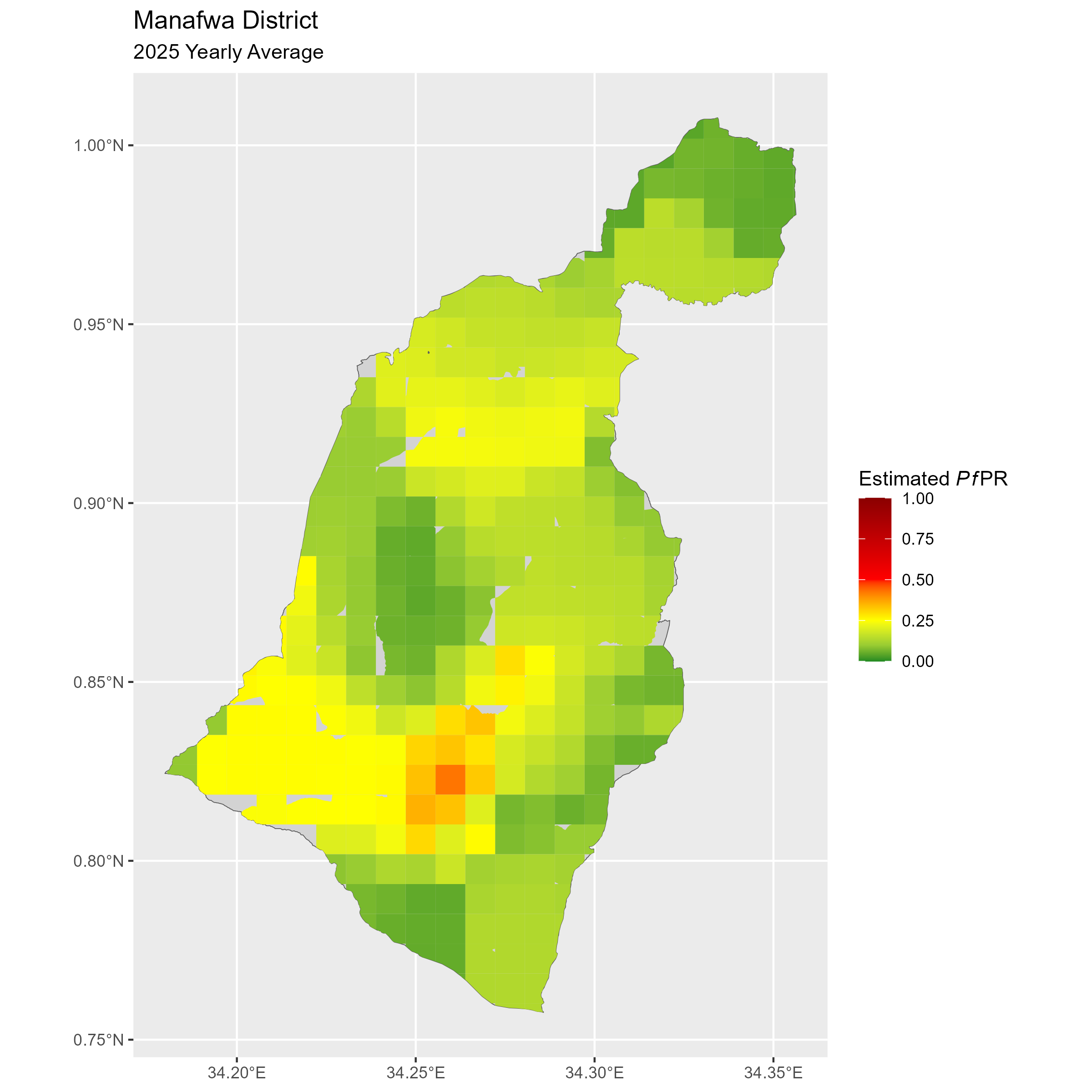 Click to watch an animation of PfPR at pixel level (in a new tab) by Year or by Month).