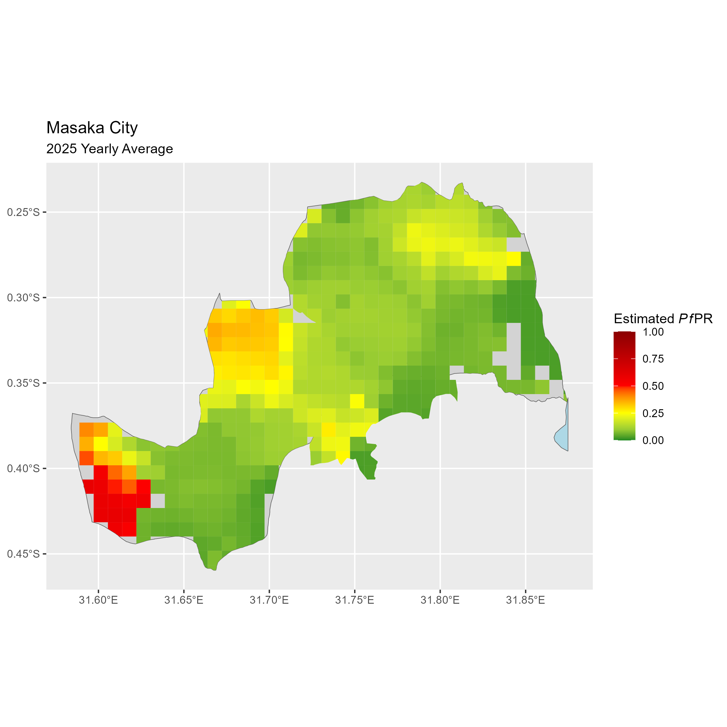 Click to watch an animation of PfPR at pixel level (in a new tab) by Year or by Month).