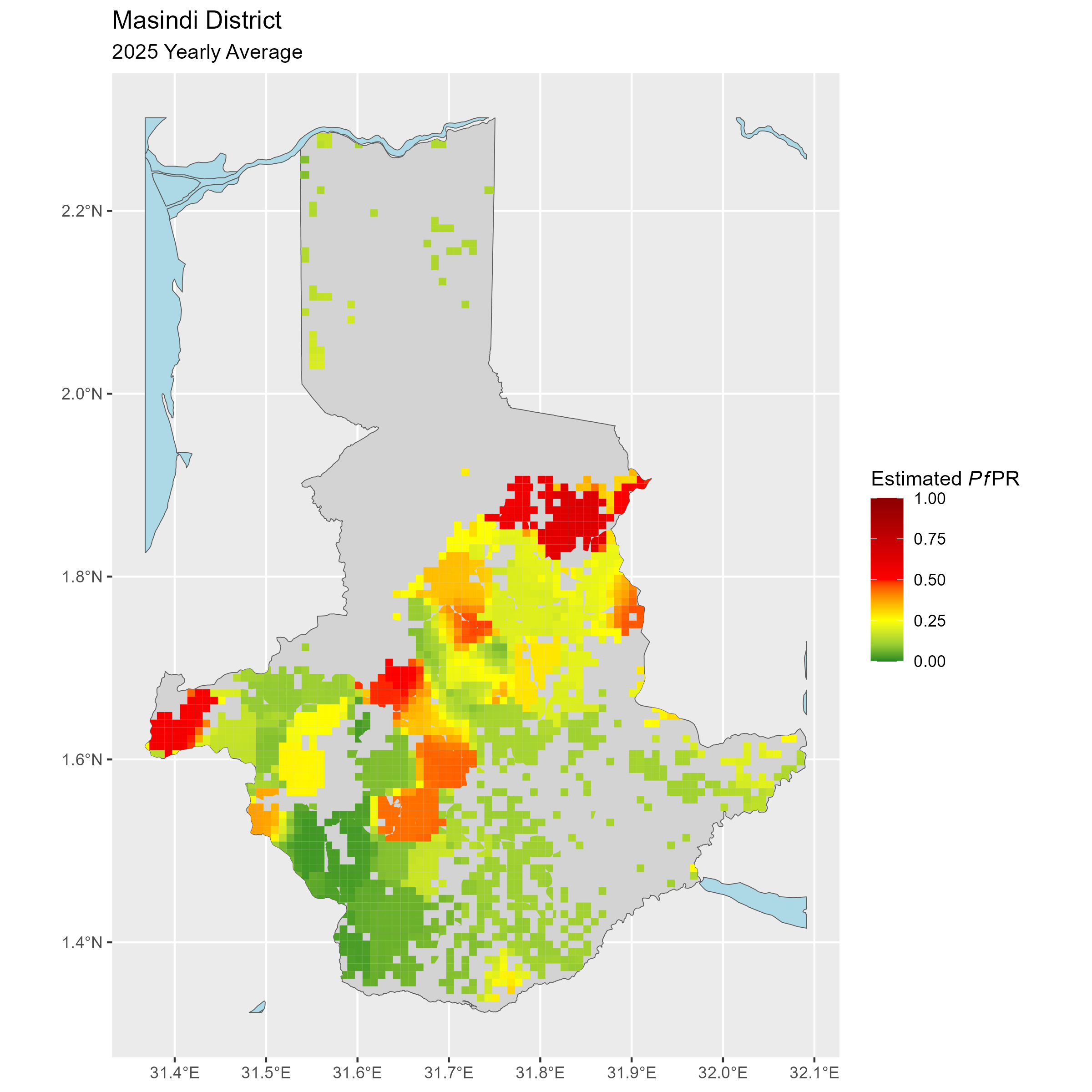 Click to watch an animation of PfPR at pixel level (in a new tab) by Year or by Month).