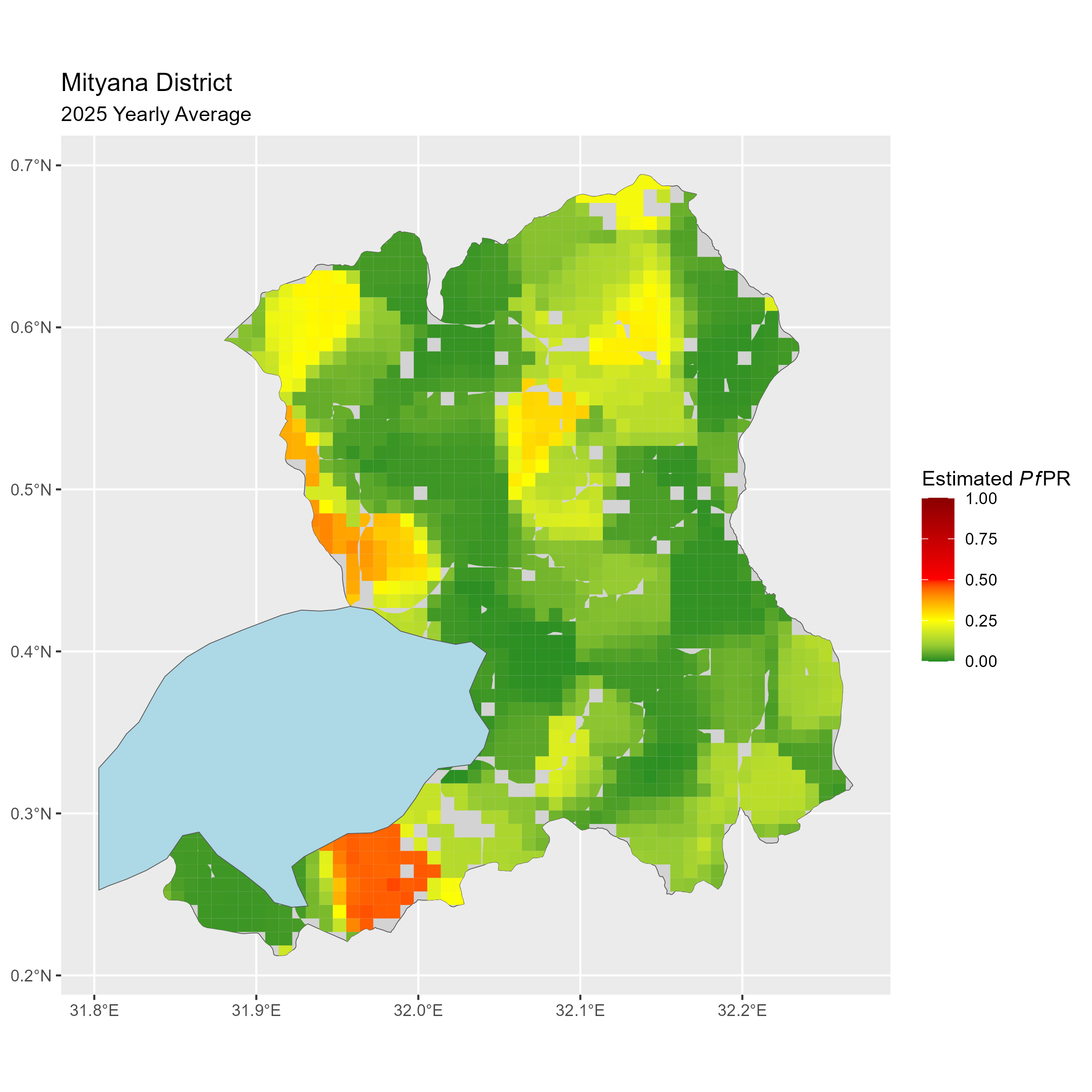 Click to watch an animation of PfPR at pixel level (in a new tab) by Year or by Month).