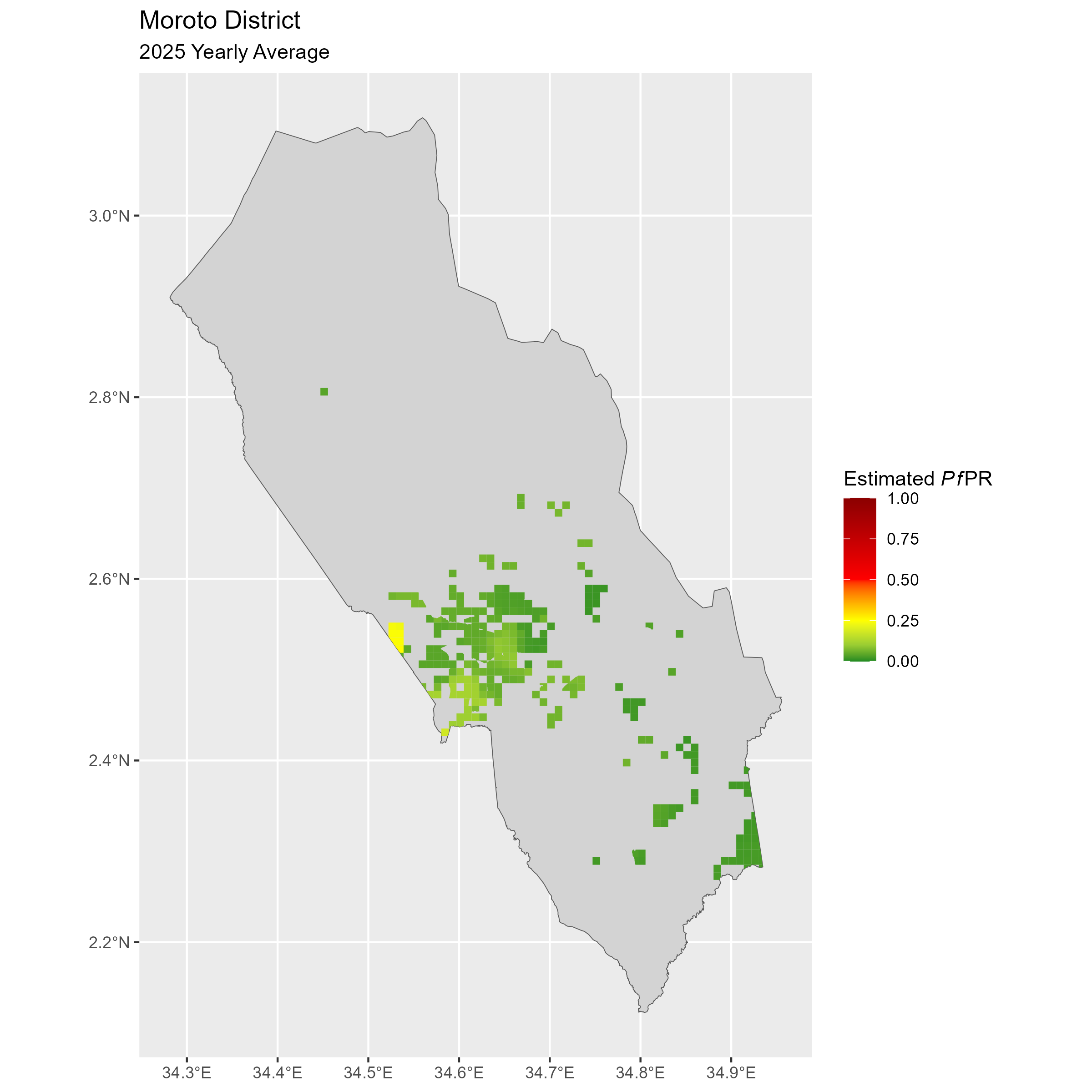 Click to watch an animation of PfPR at pixel level (in a new tab) by Year or by Month).