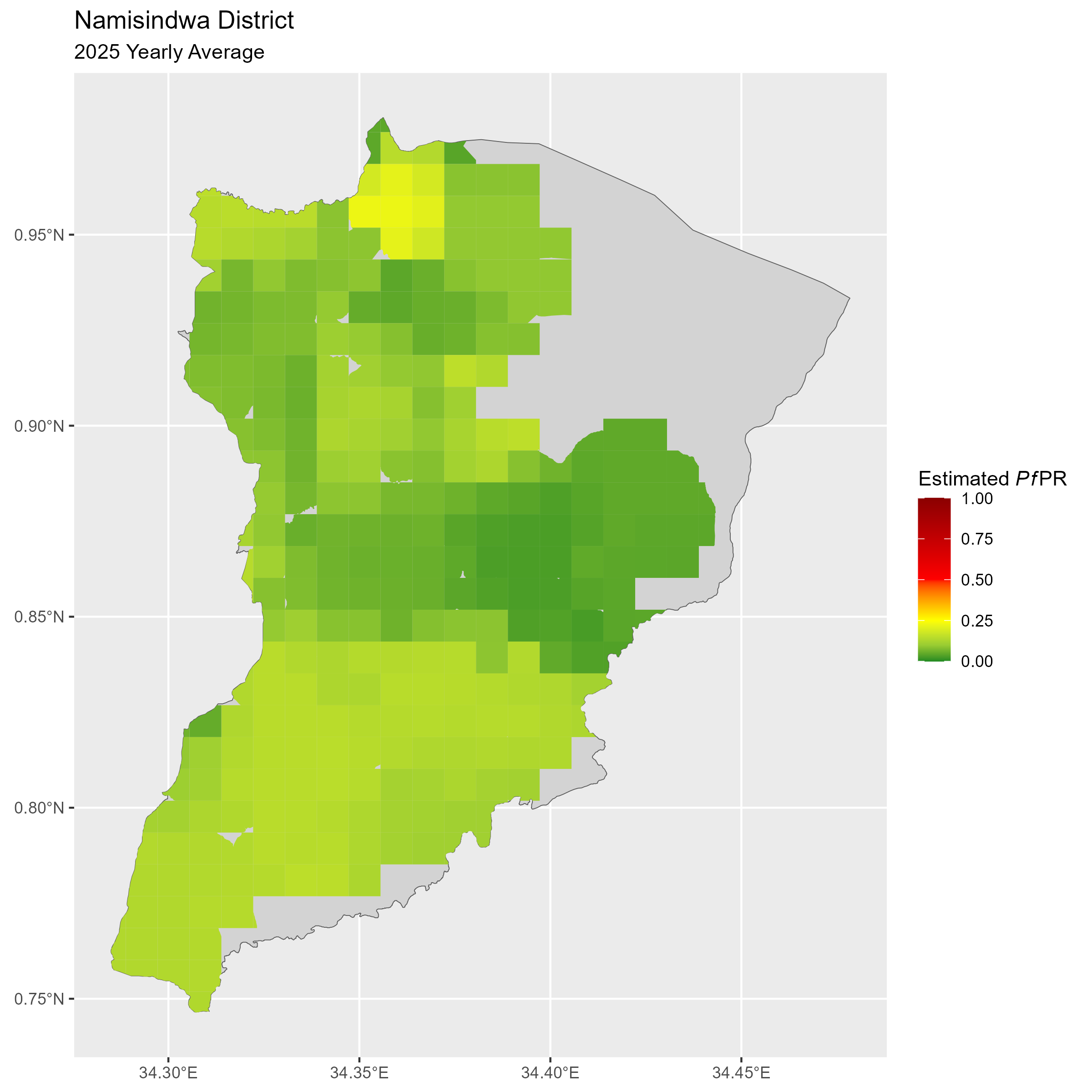 Click to watch an animation of PfPR at pixel level (in a new tab) by Year or by Month).