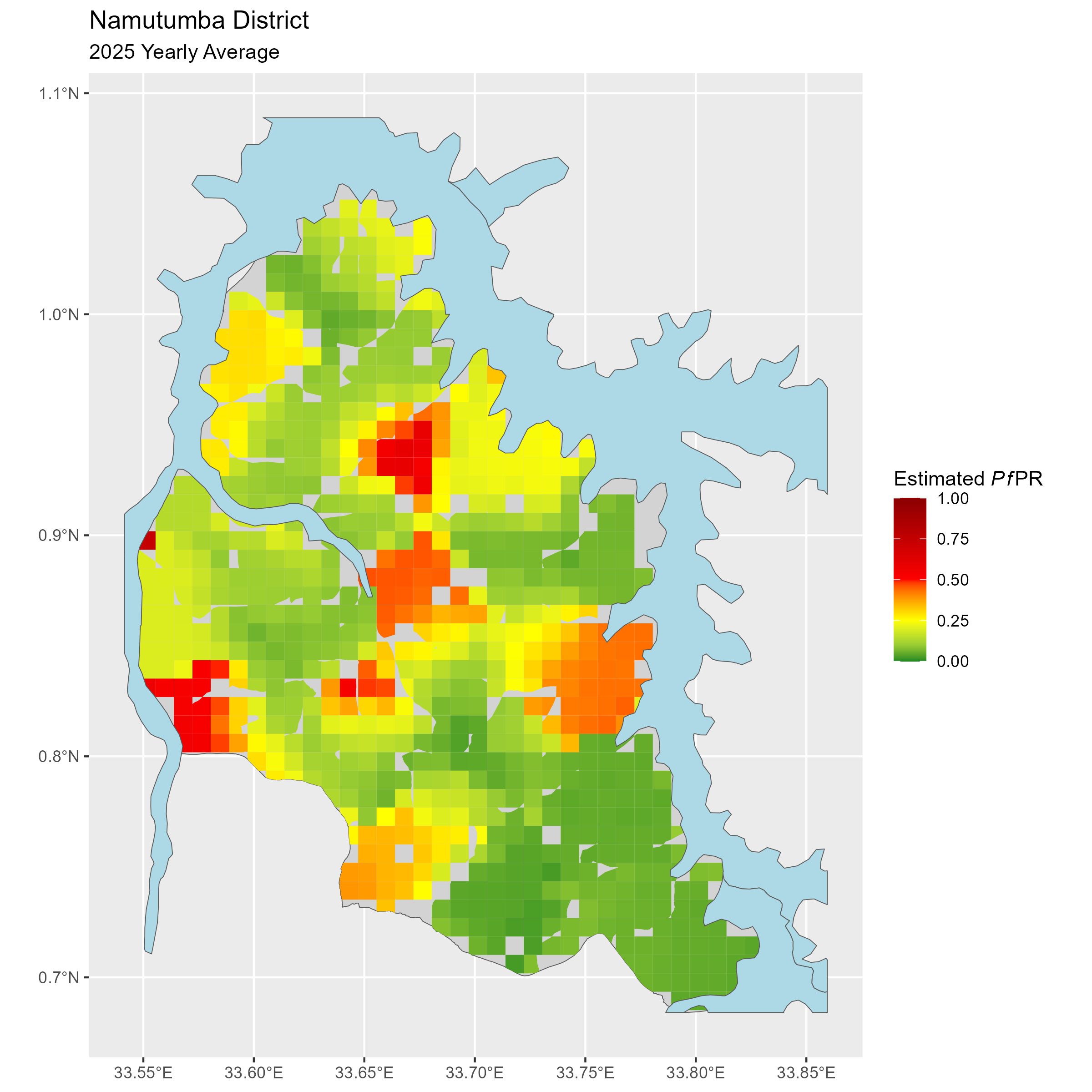 Click to watch an animation of PfPR at pixel level (in a new tab) by Year or by Month).