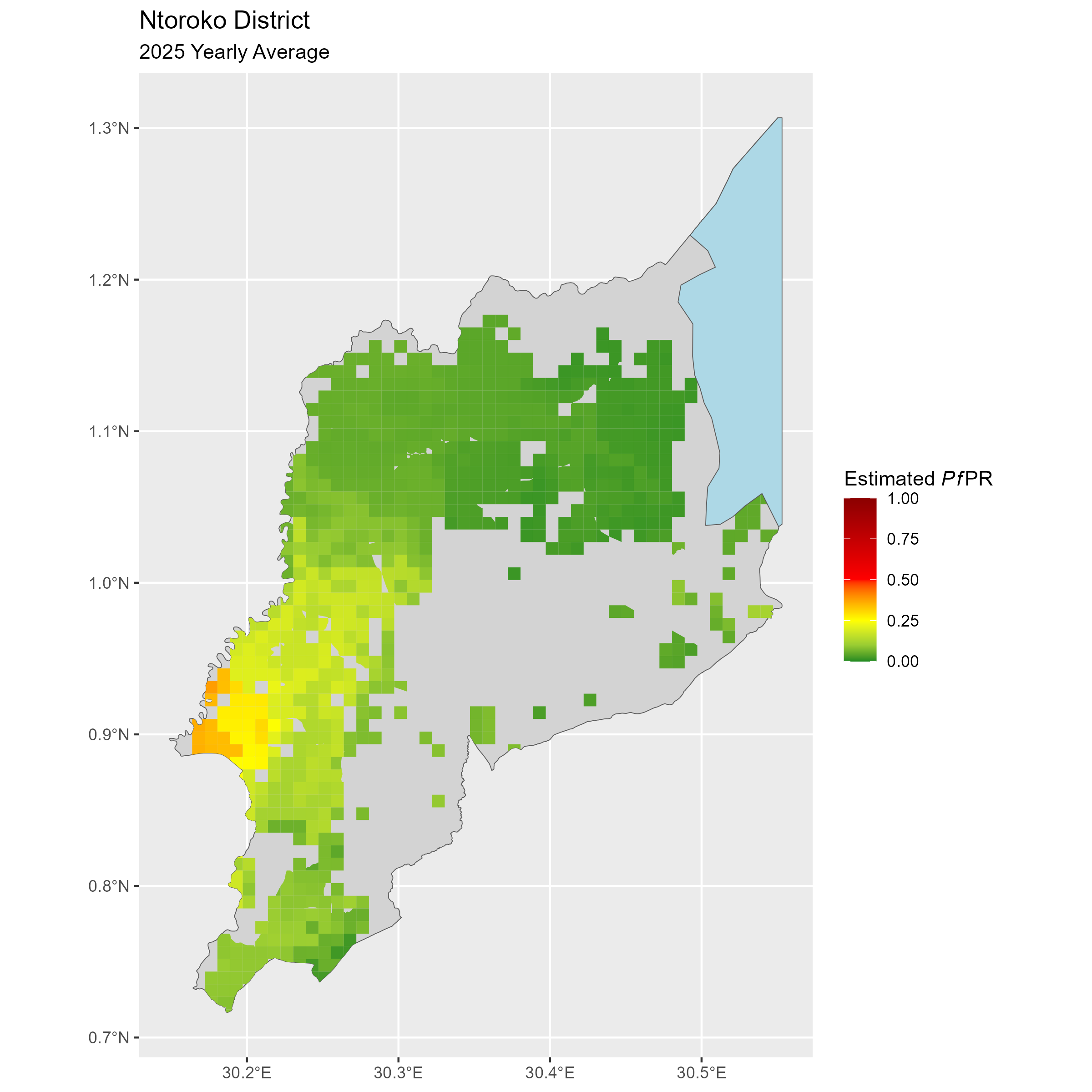 Click to watch an animation of PfPR at pixel level (in a new tab) by Year or by Month).