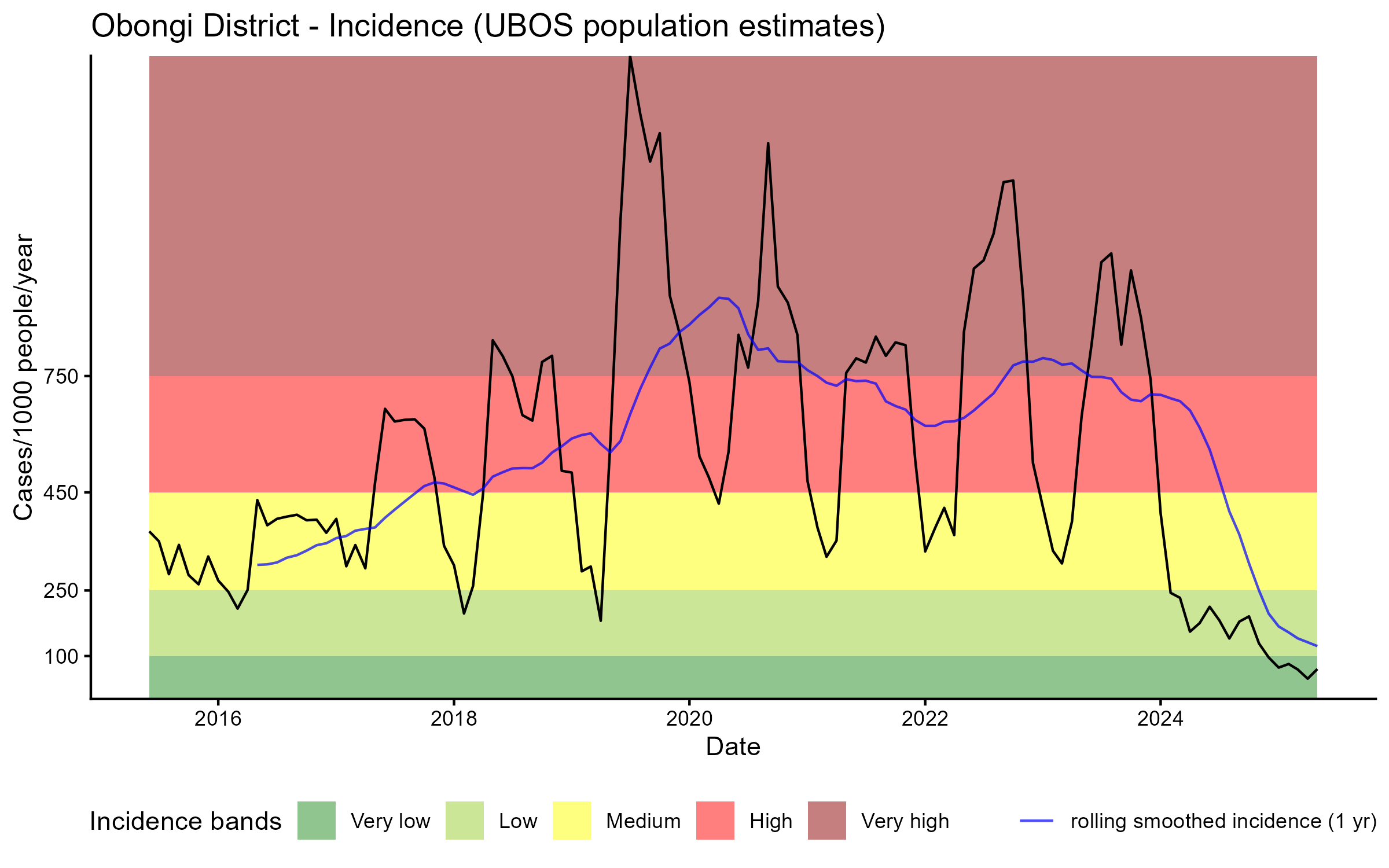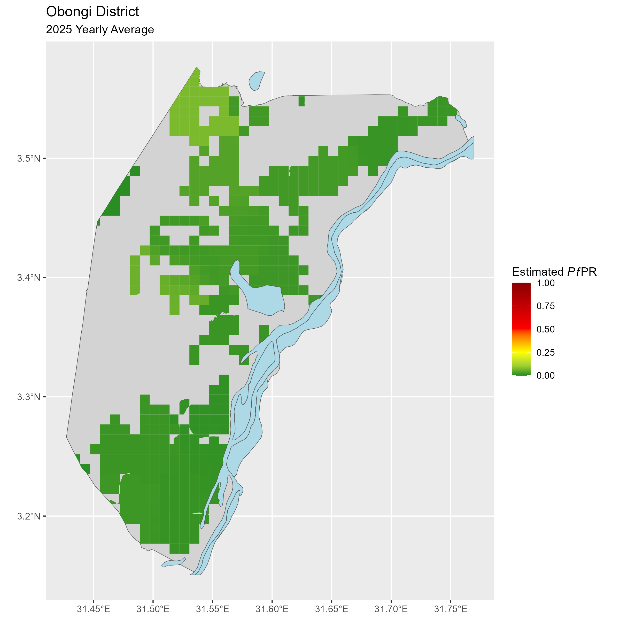 Click to watch an animation of PfPR at pixel level (in a new tab) by Year or by Month).