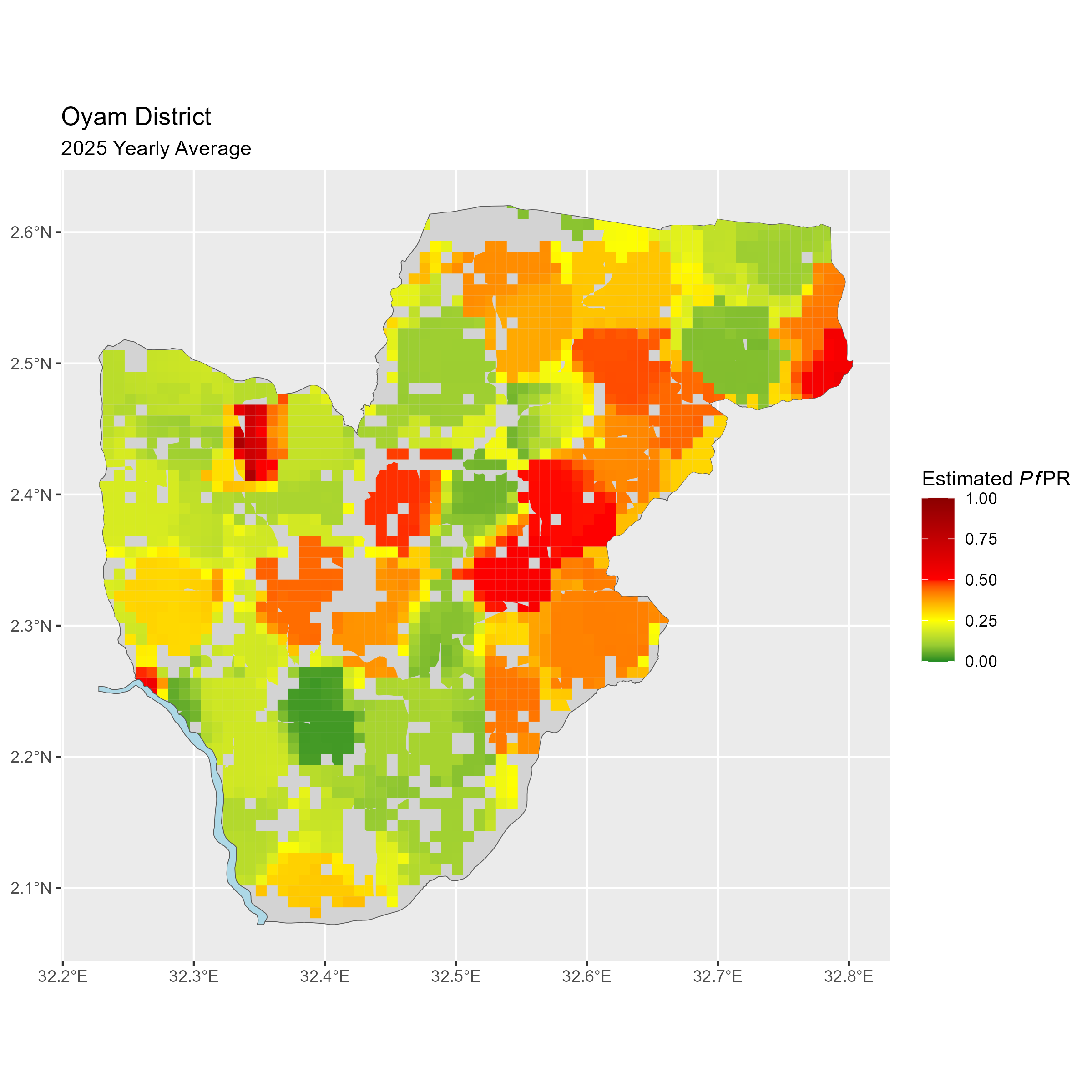 Click to watch an animation of PfPR at pixel level (in a new tab) by Year or by Month).