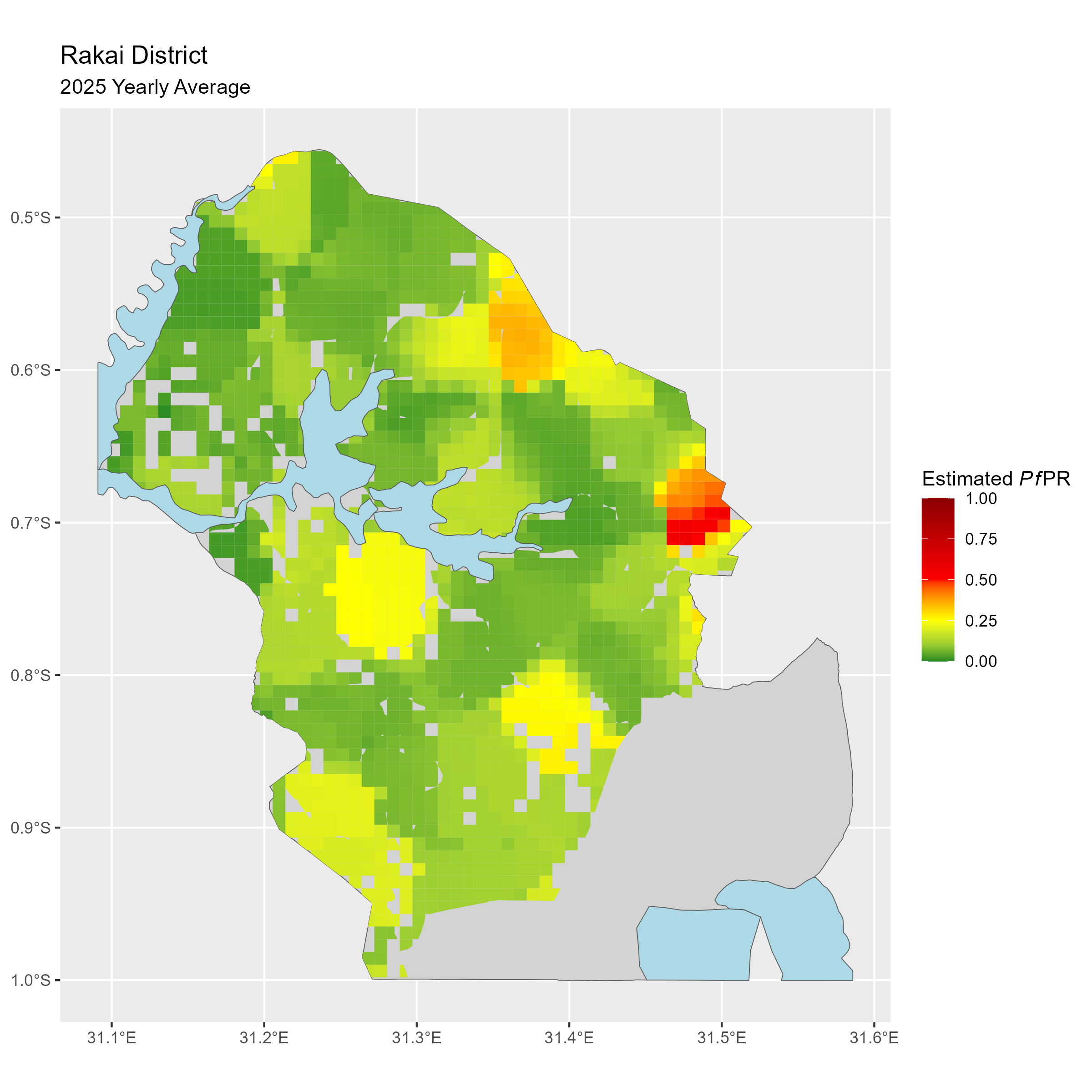 Click to watch an animation of PfPR at pixel level (in a new tab) by Year or by Month).