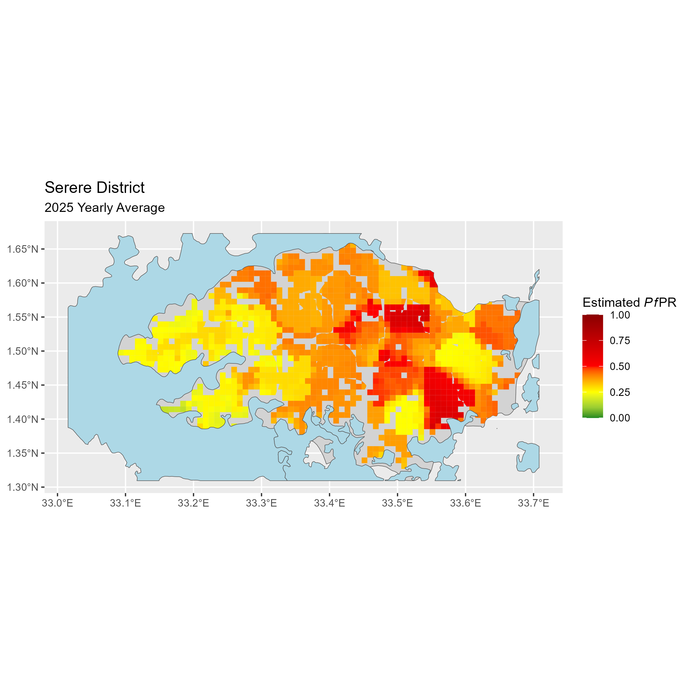 Click to watch an animation of PfPR at pixel level (in a new tab) by Year or by Month).