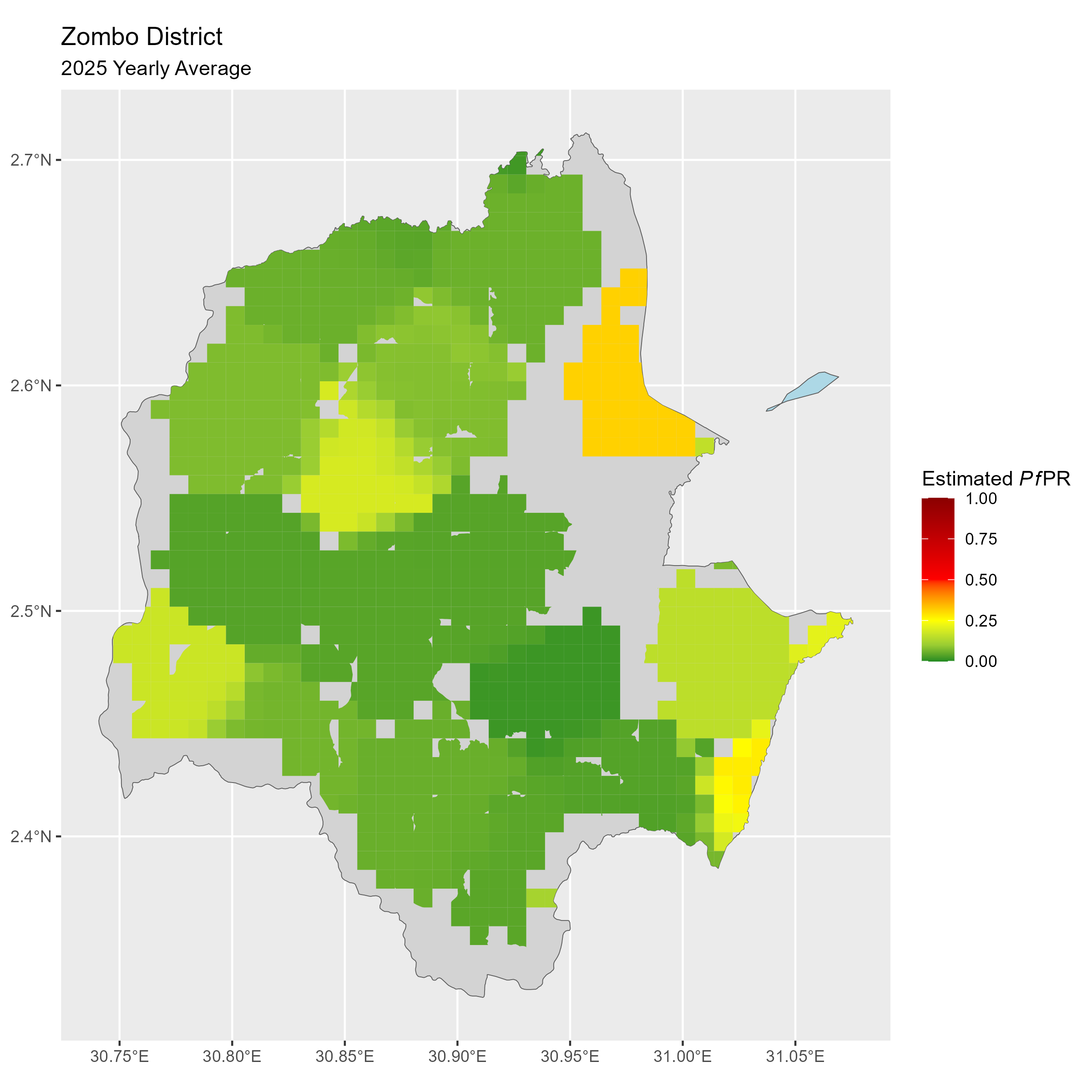 Click to watch an animation of PfPR at pixel level (in a new tab) by Year or by Month).
